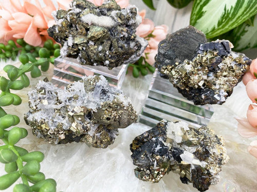We offer a variety of Sphalerite crystals that could come in forms like raw pieces, carvings and others. We even have some unique specimens combined with minerals like Quartz, Pyrite and much more! Read more about the sphalerite healing properties at the bottom of the page!