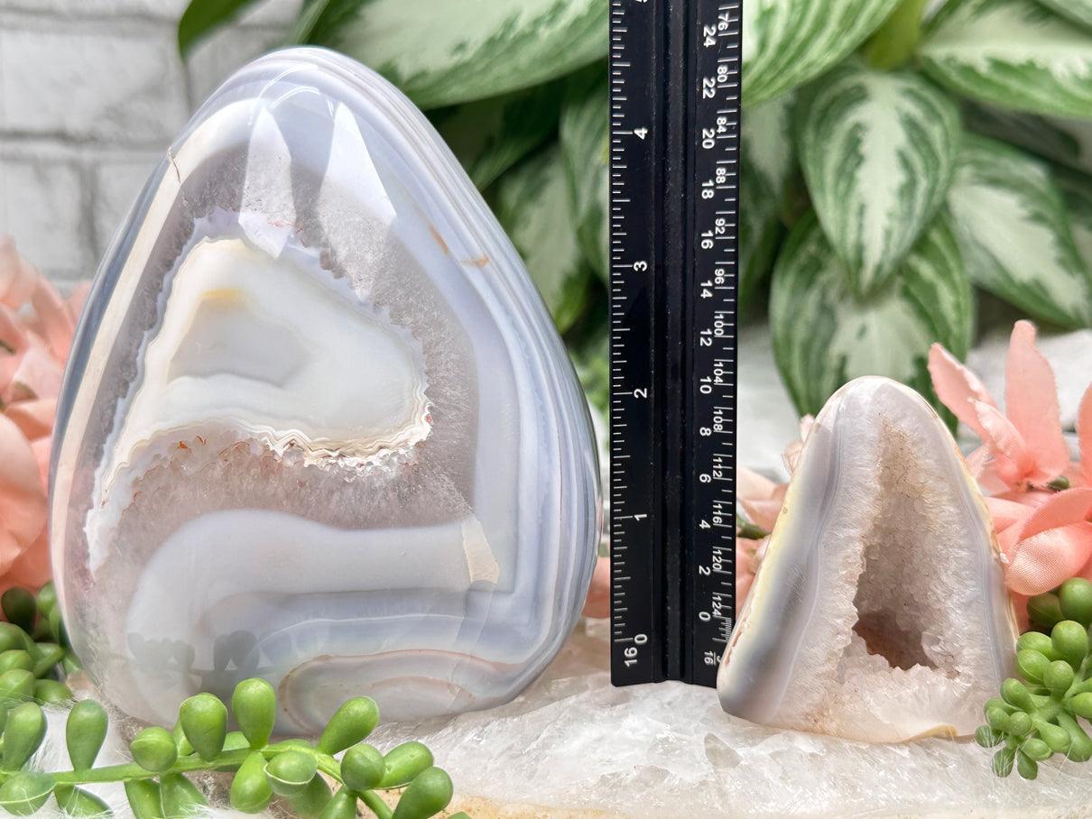 Adorable mostly gray agate crystal freeforms from Madagascar. A mix of orca agates and some classic banded agates. Some have quartz clusters and one even has amethyst. Overall these are all gray and or white in coloring, but a couple have some other colors as well. Very cute in their own ways!
