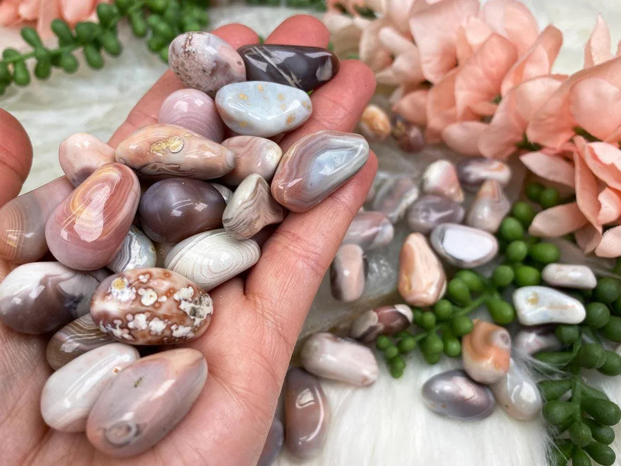 You will receive ONE Tumbled Botswana Agate piece that is intuitively chosen. There are no color requests and they will vary! I do have some smaller Pink Botswana Agate tumble sets available in little sets!
