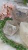 Large clear quartz crystals from Brazil with subtle gray lithium phantoms and amphibole inclusions! Both quartz and smoky quartz pieces.  Quartz is one of the few crystals that can not only be programmed with your intentions, but also does not have to be cleansed. These have a unique coloring that has some gray, smoky-ness, and even a little bit of yellow from iron. A couple are more of a classic point formation, and some are polished into a bit of a geometric cut.