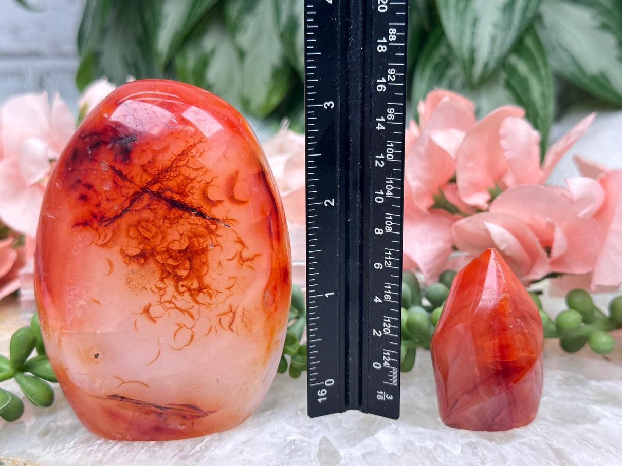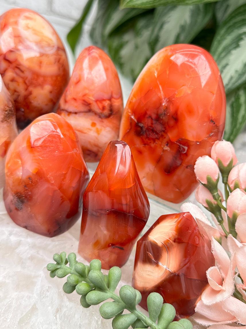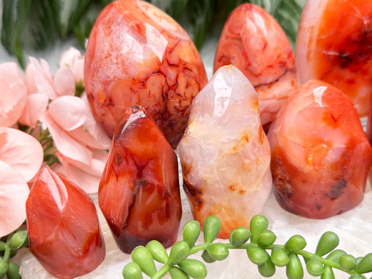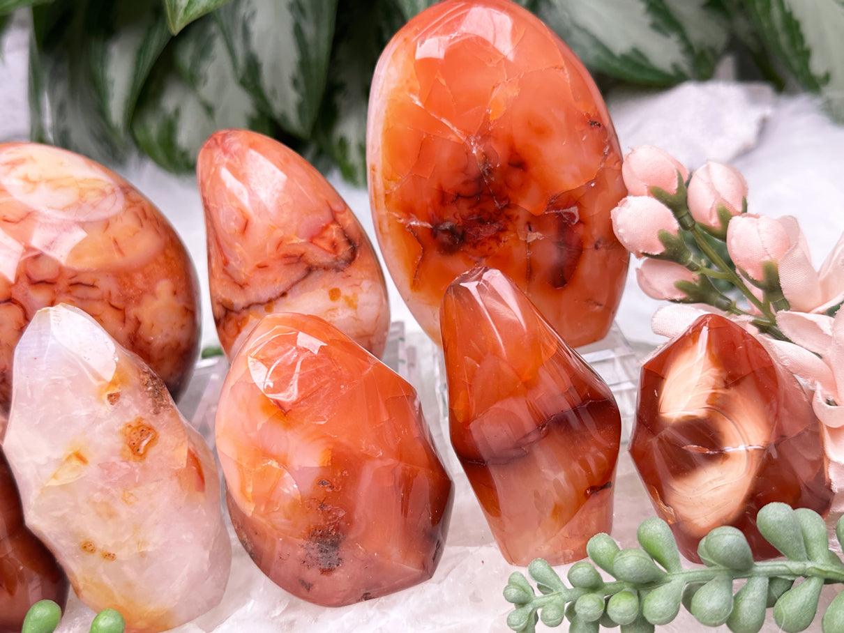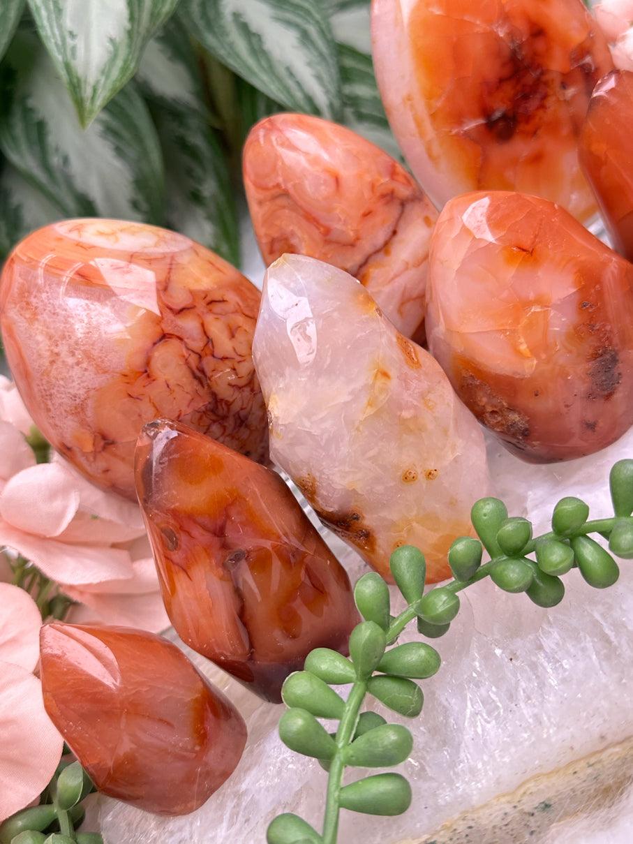 We offer some very special Carnelian pieces that may be found in different forms like tumbled stones as well as spheres, jewelry and much more. We also have a lot of gift sets and beginner sets which combine this crystal with other useful stones. Read more about the carnelian meaning at the bottom of the page!