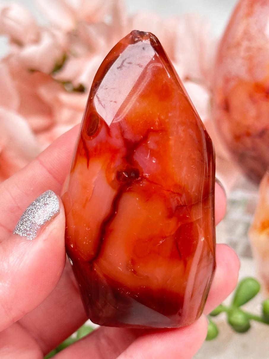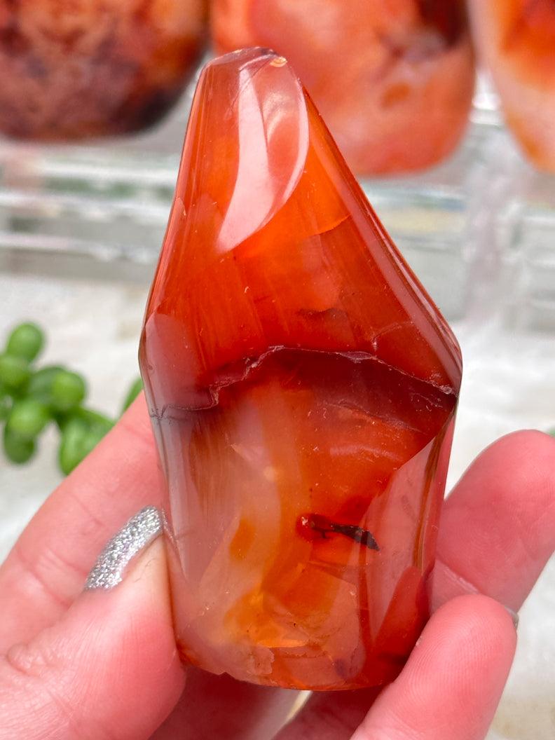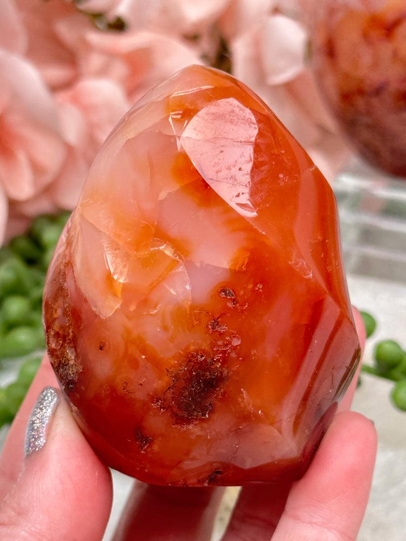 Remember that carnelian, like other crystals, may benefit from regular cleansing, especially if you use it frequently or for healing purposes. By keeping your carnelian both physically and spiritually clean, you can enjoy its positive energies and vibrant qualities to the fullest. Learn more on how to cleanse crystals in general on my blog post.
