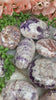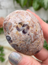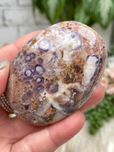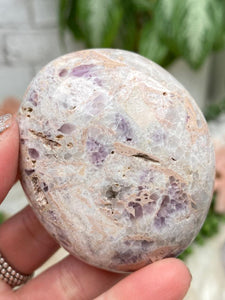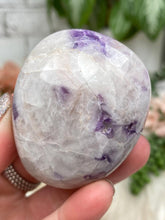 Adorable Chevron Amethyst palm stones from Madagascar. They have an awesome combination of purple amethyst, white 'chevron' lines of albite, some with some hematite that make for a pink hue. These amethyst palm stones are great for meditation or keeping under your pillow to help with sleep.