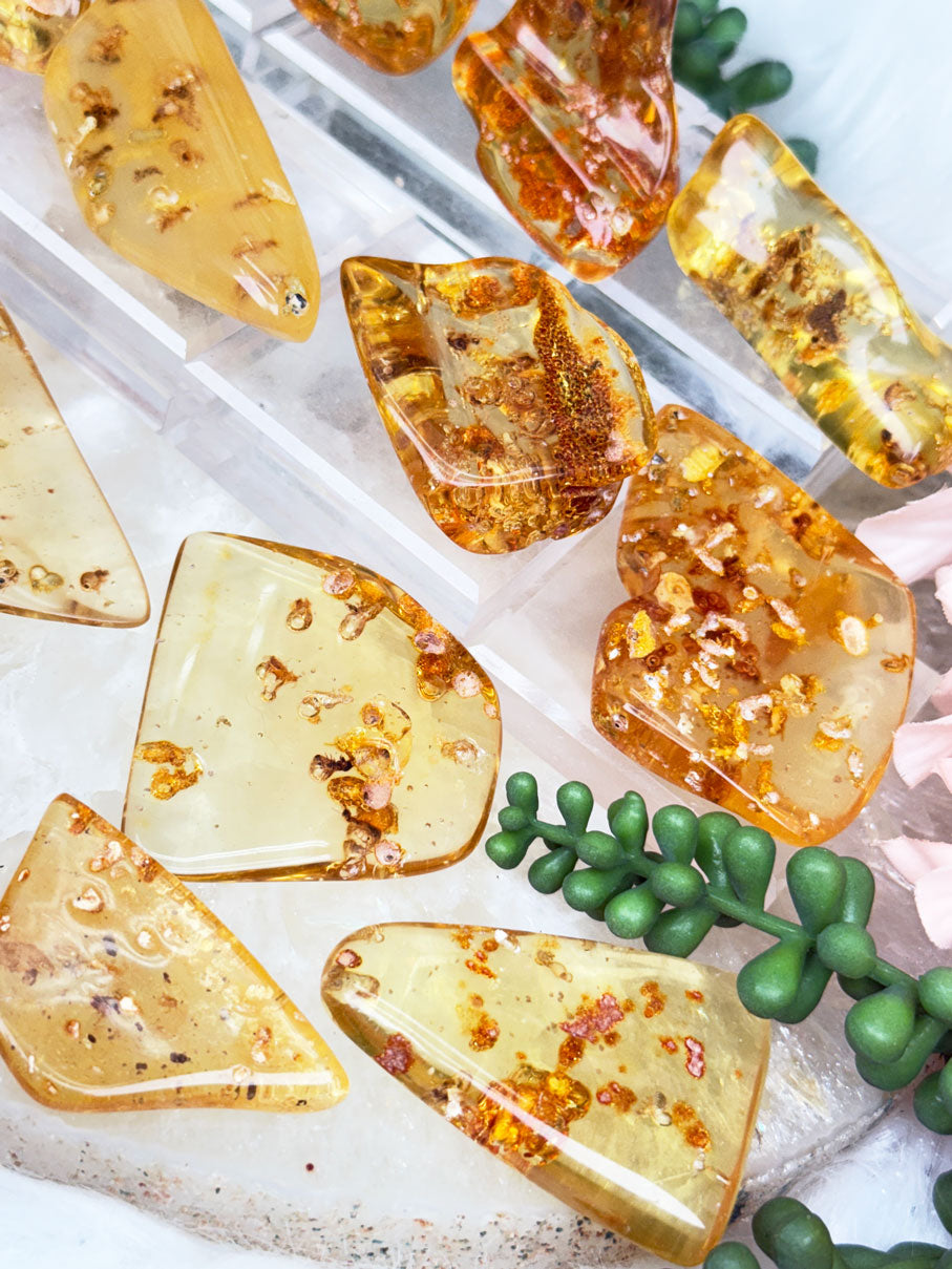 I also have a semi-polished amber (no bugs) available on the website!