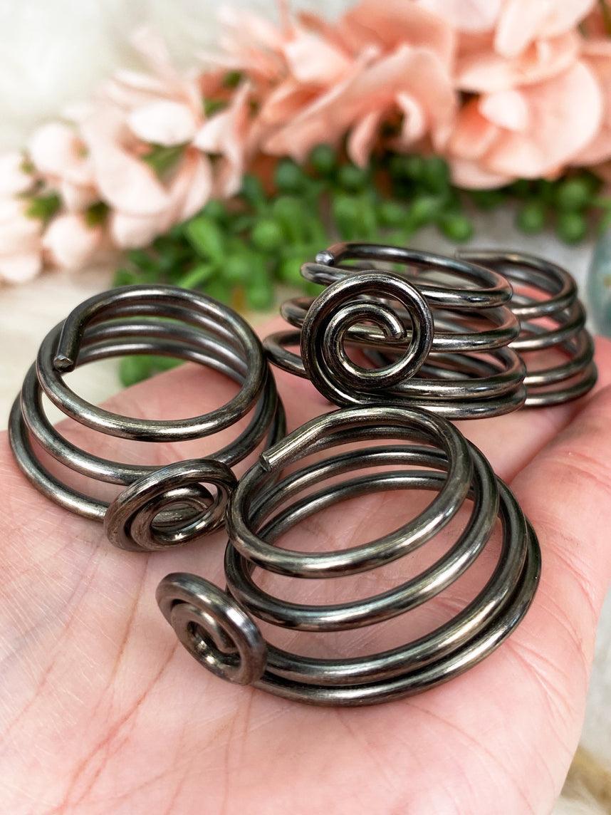 These simple yet modern metal spring style crystal sphere and carved egg stands are an essential for displaying your favorite crystals. All sphere or eggs purchases from my shop over $10 include a free plastic stand, but these are an awesome way to step it up! These stands are a silver or bronze 'twist' or spring look!Â