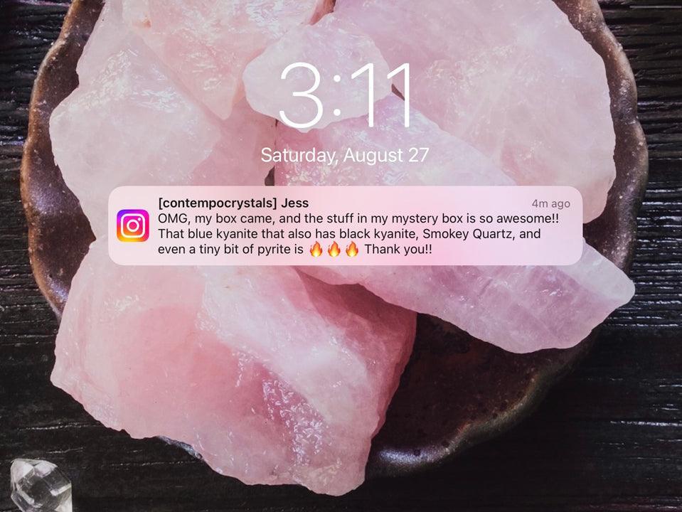 Please do not post any unboxing videos of you being mad about what you get.... I am just one person, I am not perfect and I cannot read minds. Please do not ruin my business (and livelihood) because of a mystery box.  There is such a massive range of crystals and products, if you are going to be upset by what you might receive, please opt to choose specific items from my shop in lieu of a mystery box. There are TONS of great options on this site.