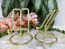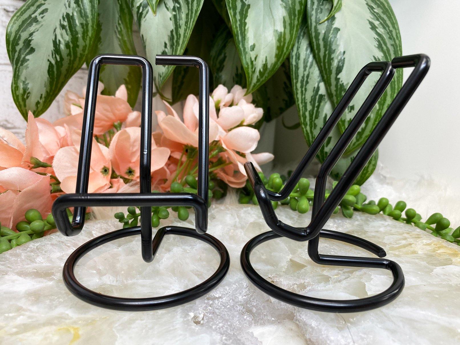 Simple and modern metal mineral and crystal display stands available in silver, black, or gold. These metal stands work best with thinner raw crystal clusters or slices. You just need to make sure it can grab onto the bottom edge! A bit more on that below, and definitely take a look at the dimensions as well.