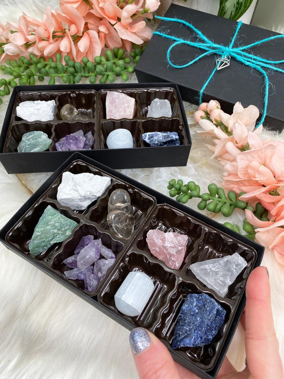 In a world where fleeting gifts like roses and chocolates have their moment but eventually fade away, crystals stand as timeless symbols of beauty, energy, and lasting impact. Introducing our 'Crystal Box' line, where we bring you the essence of these precious stones in a carefully curated collection. The Essentials set is like the foundation of a beautiful crystal journey, offering both rough chunks and tumbled gems that represent the fundamentals of crystal healing.