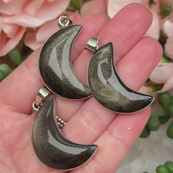 Colors and patterns of the 'shimmer' may vary. I also have smaller silver moons available! Also take a peek at other obsidian crystal options I have! Including a gold sheen obsidian moon pendant!