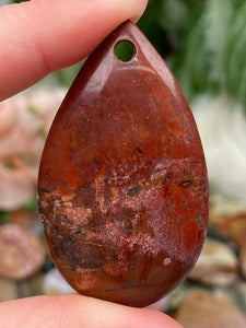 These jasper pendants from Madagascar are truly remarkable and a testament to the diversity of the jasper family. While the majority are captivating ocean jasper, you can also discover some other intriguing jasper varieties like kambaba jasper, polychrome jasper, agatized jasper, and red jasper within this collection. Each pendant boasts a single polished side that beautifully showcases the unique patterns and colors of the jasper, and a few lucky ones even feature a polished back, but most will not. The variety of shapes available, including circles, ovals, hearts, tear drops, and other distinctive cuts, allows you to choose the pendant that resonates with you the most.