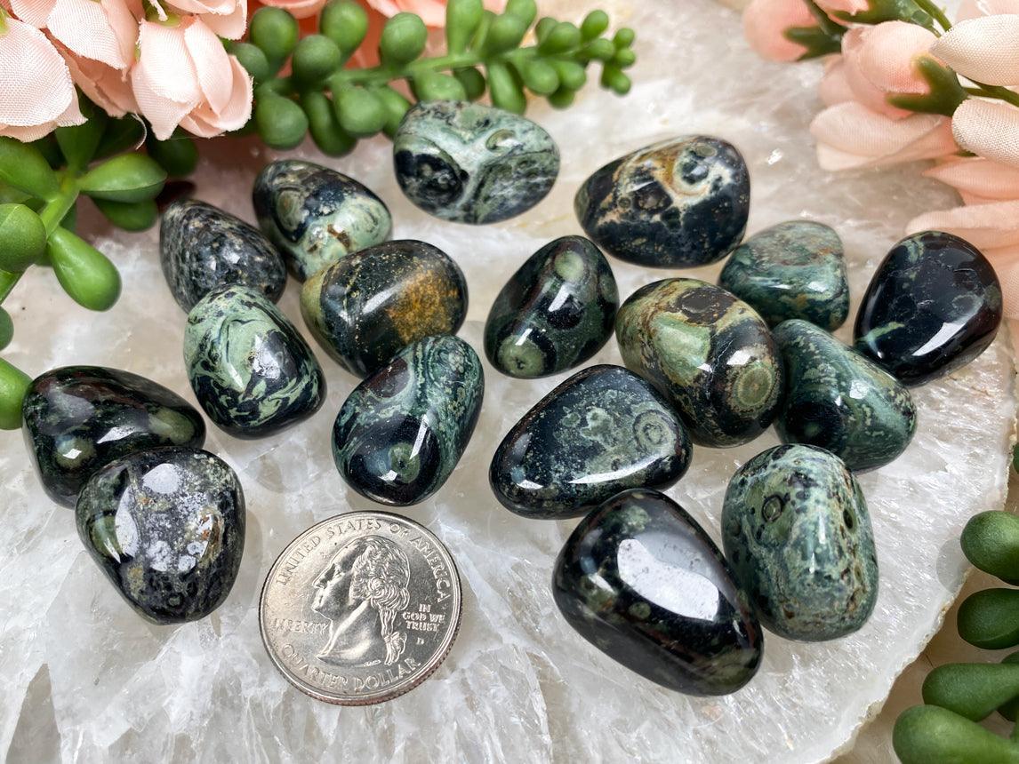 Tumbled Kambaba Jasper, with its mesmerizing alligator-skin-like patterns, hails from the enchanting landscapes of Madagascar. This unique stone, often referred to as Alligator Jasper, is more than just a visual delight; it carries a wealth of metaphysical attributes that can enhance your life in various ways.