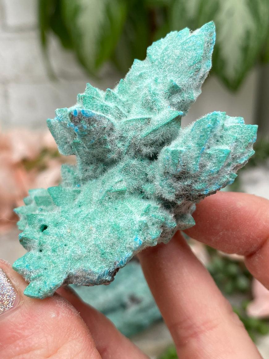 There is a lot of discussion on these, and no definitive answers. These are considered a 'post mining' crystal because after the calcite (base crystal) is taken from the ground, somehow copper, gypsum (the clear sparkles or 'fur') and other minerals combine or form to cause the fuzzy blue appearance. Some people say this happens on its own, and some have suggested that miners may have figured out how to help the process along using a natural solution. I still think they are beautiful either way, and also still rare, just wanted to be honest.