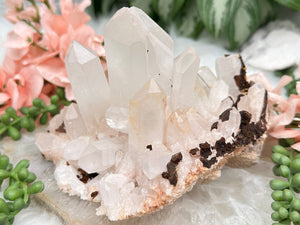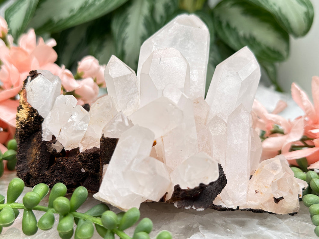 Crystal clusters form through a fascinating process that unfolds over time. It begins when a pocket or cavity in the Earth's crust is created, often through geological activity or the cooling of molten rock. Within these voids, mineral-rich solutions seep in, carrying various elements and ions. As the solution slowly evaporates or cools, the elements begin to bond and crystallize, initiating the growth of individual crystals. In the case of crystal clusters, the conditions are favorable for multiple crystals to grow closely together, often sharing a common base or matrix. The crystals within the cluster continue to grow and interlock, forming an intricate network of interconnected structures. This process can take thousands or millions of years, resulting in the formation of stunning and unique crystal clusters.