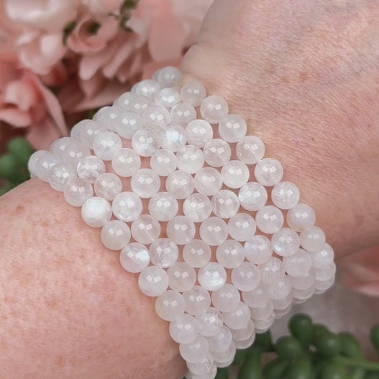 Wearing a moonstone bracelet not only adds a touch of ethereal beauty to your attire but also brings a host of benefits to your life. Moonstone is renowned for its connection to the lunar energies and its association with intuition, emotions, and feminine energy. This crystal is often linked to the crown and third eye chakras, making it a powerful tool for enhancing your psychic abilities and inner wisdom. Wearing a moonstone bracelet can help balance your emotional state, promoting inner peace and harmony. It's also believed to have a calming effect, reducing stress and anxiety. Moonstone is a stone of new beginnings, making it an excellent choice for those going through life changes or seeking personal growth. Overall, donning a moonstone bracelet allows you to carry the soothing and transformative energies of the moon with you throughout your day.