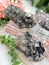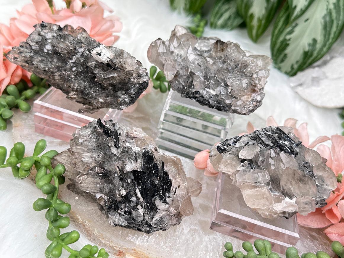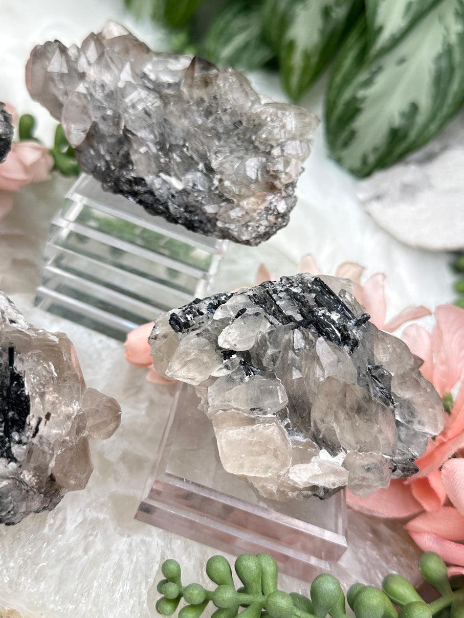 Stunners that have been hidden in a warehouse for the past 30 years! These black tourmaline in natural citrine specimens are from Brazil. These all have adorable points and formations that make them sparkle and shine. The black tourmaline is growing within the light citrine crystals giving them a darker appearance in many spots. Choose your exact piece!