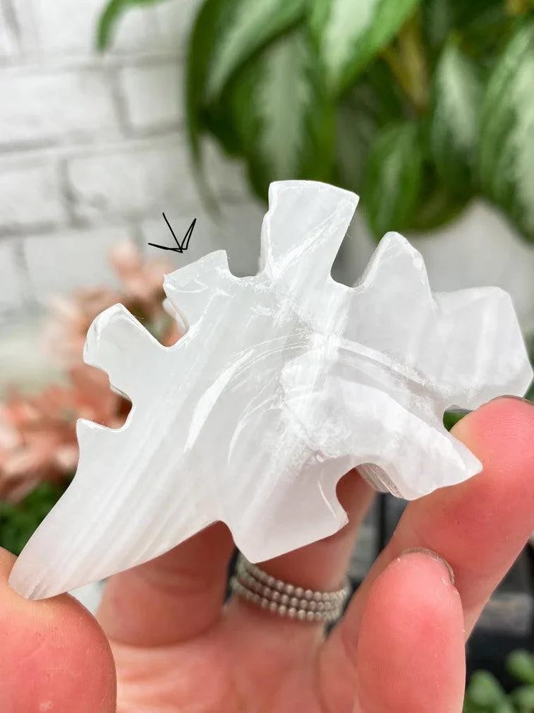 Cute Mexican onyx calcite stegosaurus crystal carvings. These crystal Dinos would make a great addition to any home, and great for our young crystal collectors as well. Each onyx calcite dinosaur is carved from one piece of stone. Perfect for crystal and dinosaur lovers!