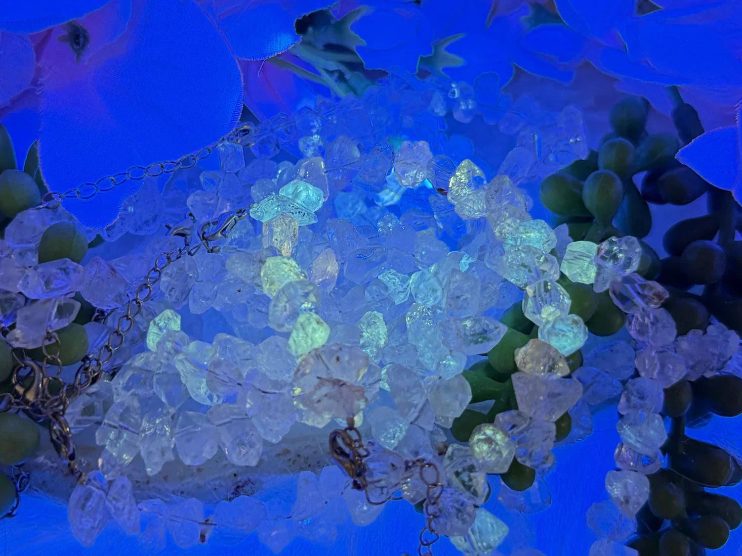 Gorgeous Pakimer Diamond bracelet featuring a classic clasp closure with an extension chain, making it easy to adjust the size for a comfortable fit. Pakimer Diamonds are often considered Herkimer Diamond’s more affordable cousin and come from Pakistan rather than New York. These beads showcase the white to clear, double-terminated crystal look Pakimers are known for, paired with a polished silver alloy metal chain for a clean and elegant style. While most of the beads are a double point, there are some single points as well. Some Pakimer Diamonds naturally contain petroleum inclusions that can glow under UV light, though this is not guaranteed for every bracelet. Some will also have some dark spots throughout.