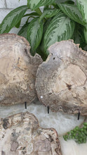 Stunning petrified wood slices from Indonesia with an earthy vibe! These are a blend of tans and browns. They are a completely solid fossilized wood slice. They have been polished on both sides, but have a natural edge.