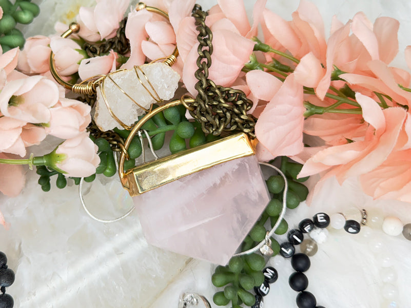 - The rose quartz necklace is a Barbara Pellegrino necklace!