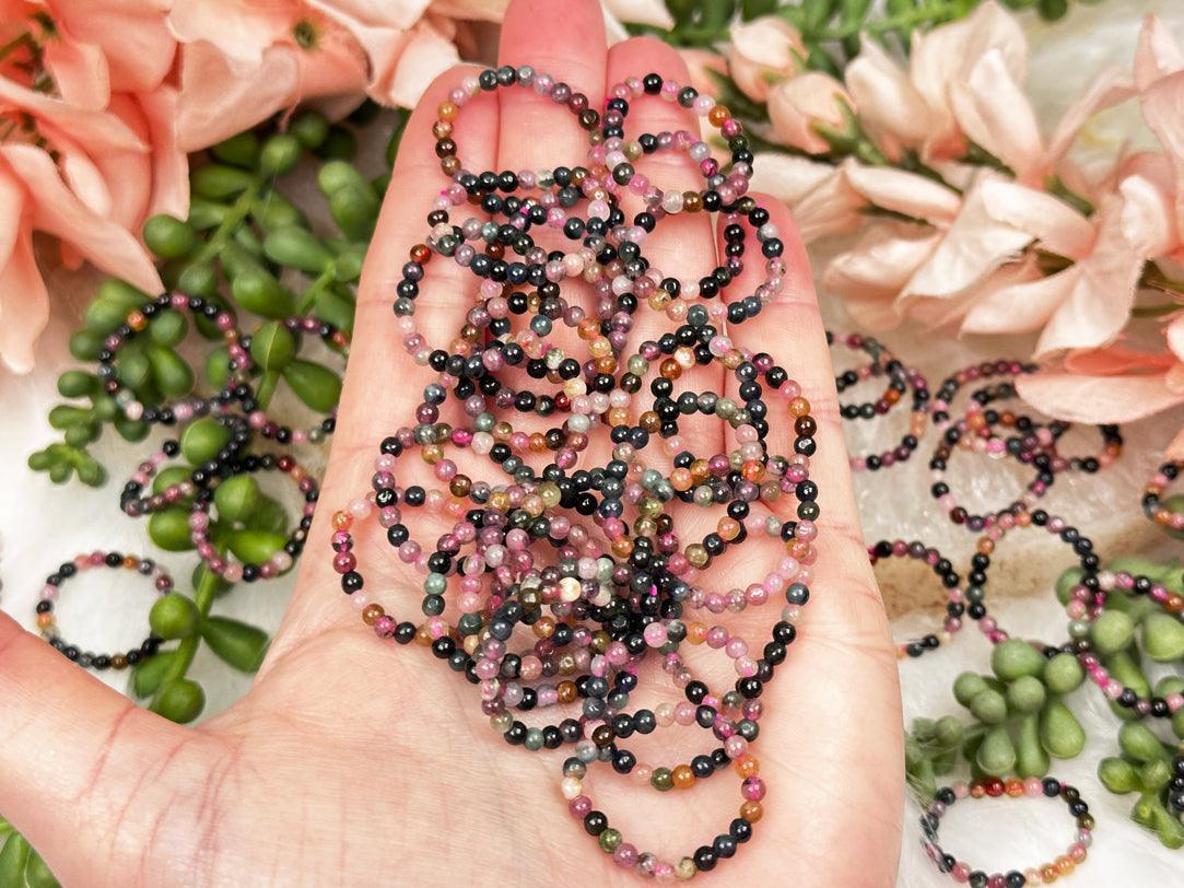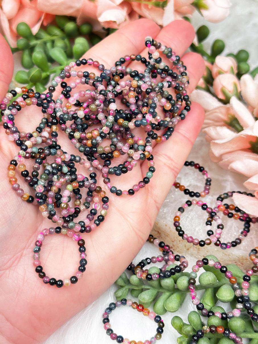 Experience the vibrant and captivating beauty of rainbow tourmaline with these multi-color tourmaline stretch beaded rings. Each ring features a delightful assortment of tourmaline beads in a spectrum of colors, including black, green, pink, yellow, and more. The combination of these rich hues creates a dazzling display of natural beauty. The stretch design allows for a comfortable fit, accommodating sizes 5-8 best, while the pink elastic interior adds a charming touch.