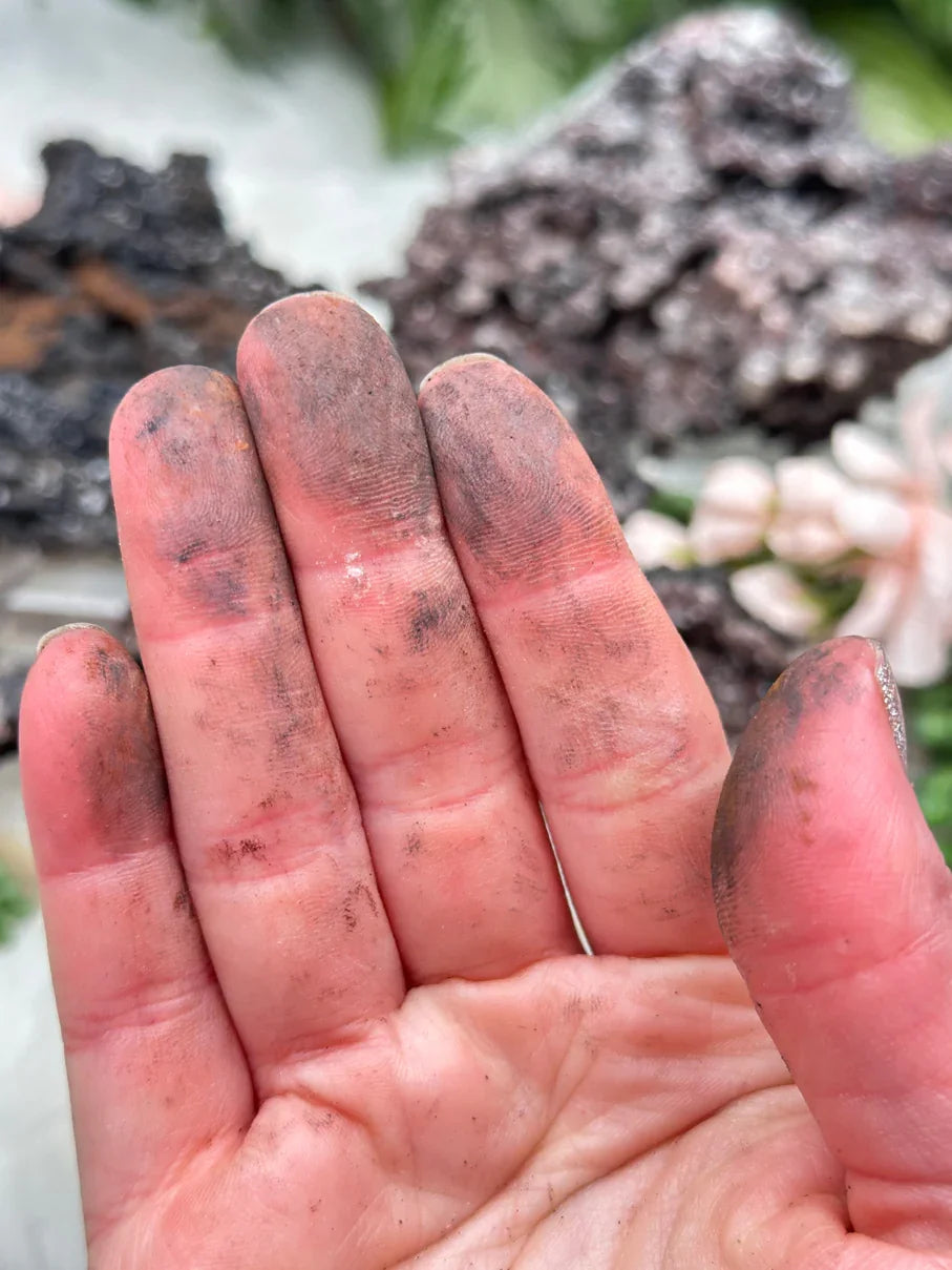 Just a heads up that some dark minerals will come off on your fingers or the surface you put them on. And they do flake a bit when handled.