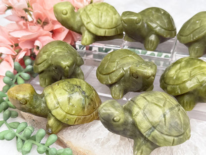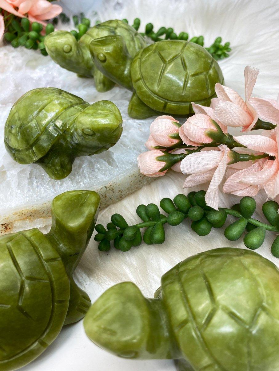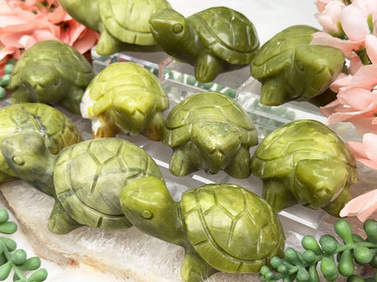 Serpentine turtle carvings are not only adorable decorative pieces but also carry significant spiritual and healing benefits. The vibrant green serpentine stone is associated with the heart chakra, making these turtle carvings powerful tools for promoting love, compassion, and emotional balance. They serve as gentle reminders to stay grounded and connected to nature, as turtles are symbols of longevity and stability in various cultures.