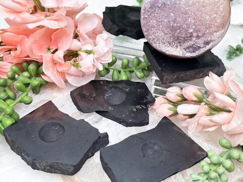 The irregular shape adds a touch of natural elegance, making each stand a one-of-a-kind piece. By utilizing Shungite stands, you not only showcase your crystal spheres stylishly but also benefit from the protective and detoxifying energies that Shungite is believed to offer, creating a harmonious blend of aesthetic appeal and energetic balance in your crystal collection.