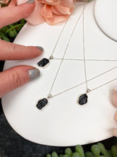 The these black tourmaline pendants are on a sterling silver chain that is adjustable via a small ring in the chain at 16" or the end at 18". You will receive ONE labradorite necklace that is chosen for you.