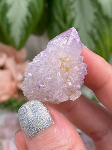 Adorable points and clusters of purple spirit quartz crystals, also known as cactus quartz or fairy quartz. Some are a single point, some have a cluster formation, aka many points. Some are an overall light purple, some have a dark purple coloring, some are a yellow spirit quartz, and some have other colors! Great for a side table, nightstand, or just about anywhere. It is said that all of the tiny points help to amplify their energy. You could even use some of the points for jewelry making!