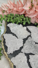 Stunning tiny but mighty little druzy apophyllite crystals from India. Most of these are all white, but a few of them have a gray hue to them. One of the larger ones has a little bit of light peach stilbite on it. A few of these have a druzy chalcedony back with an even finer shimmer to them. These are very thin, which is what makes them so cool!