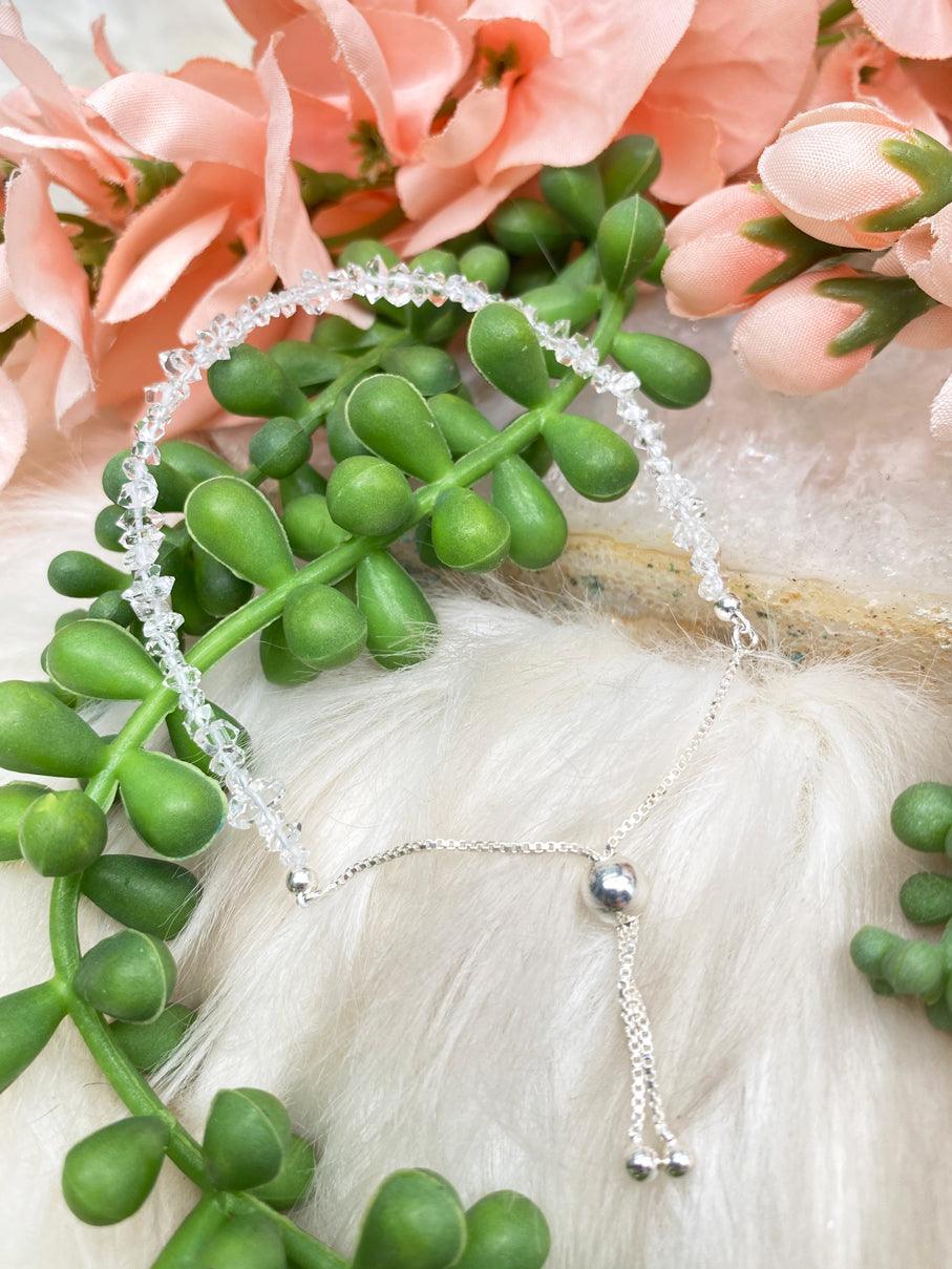 Gorgeous sterling silver clear Herkimer Diamond Bracelets! Herkimer Diamonds are said to be one of the most powerful versions of clear quartz. They come from a special locality in Herkimer, New York. These bolo style bracelets feature super tiny double terminated herkimer diamonds, and sterling silver chain and ball that allow for adjustment.