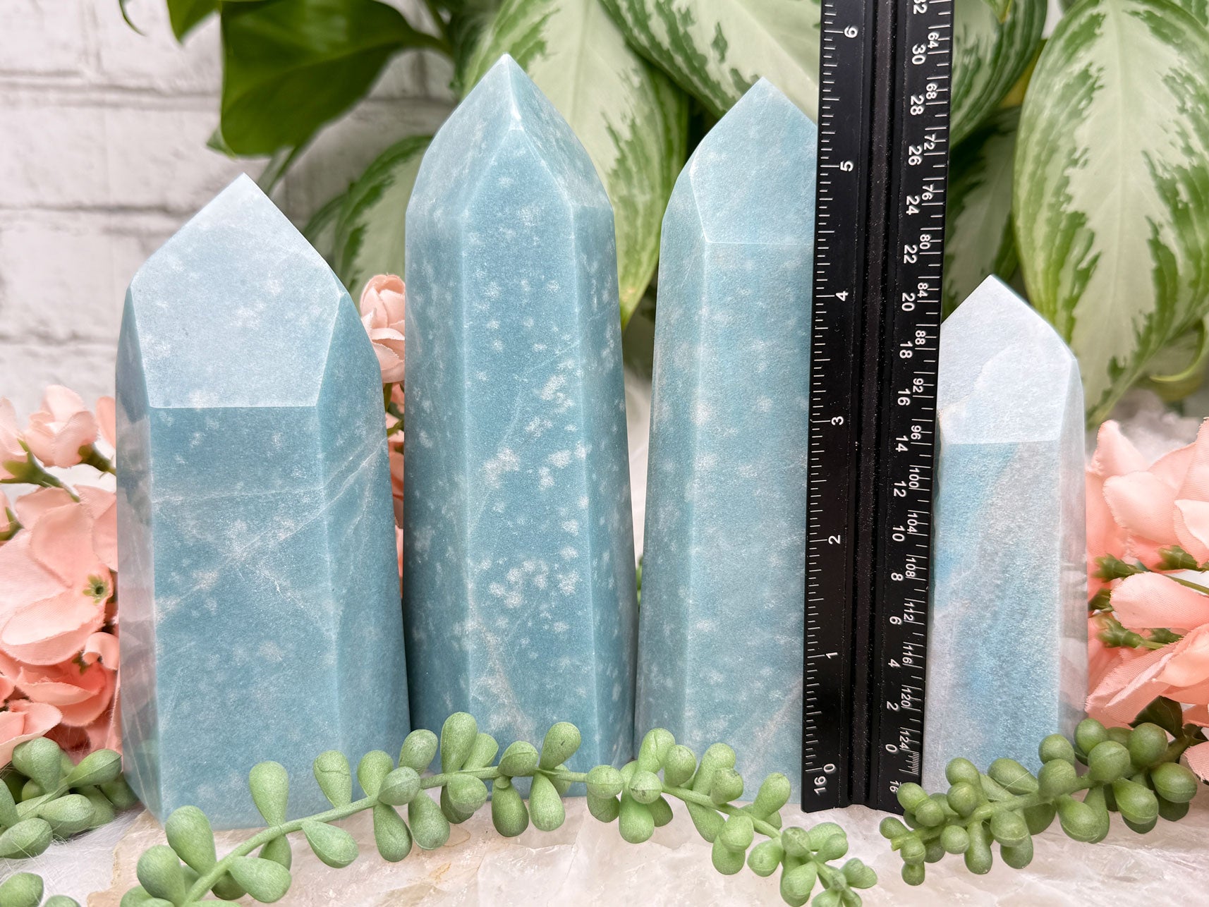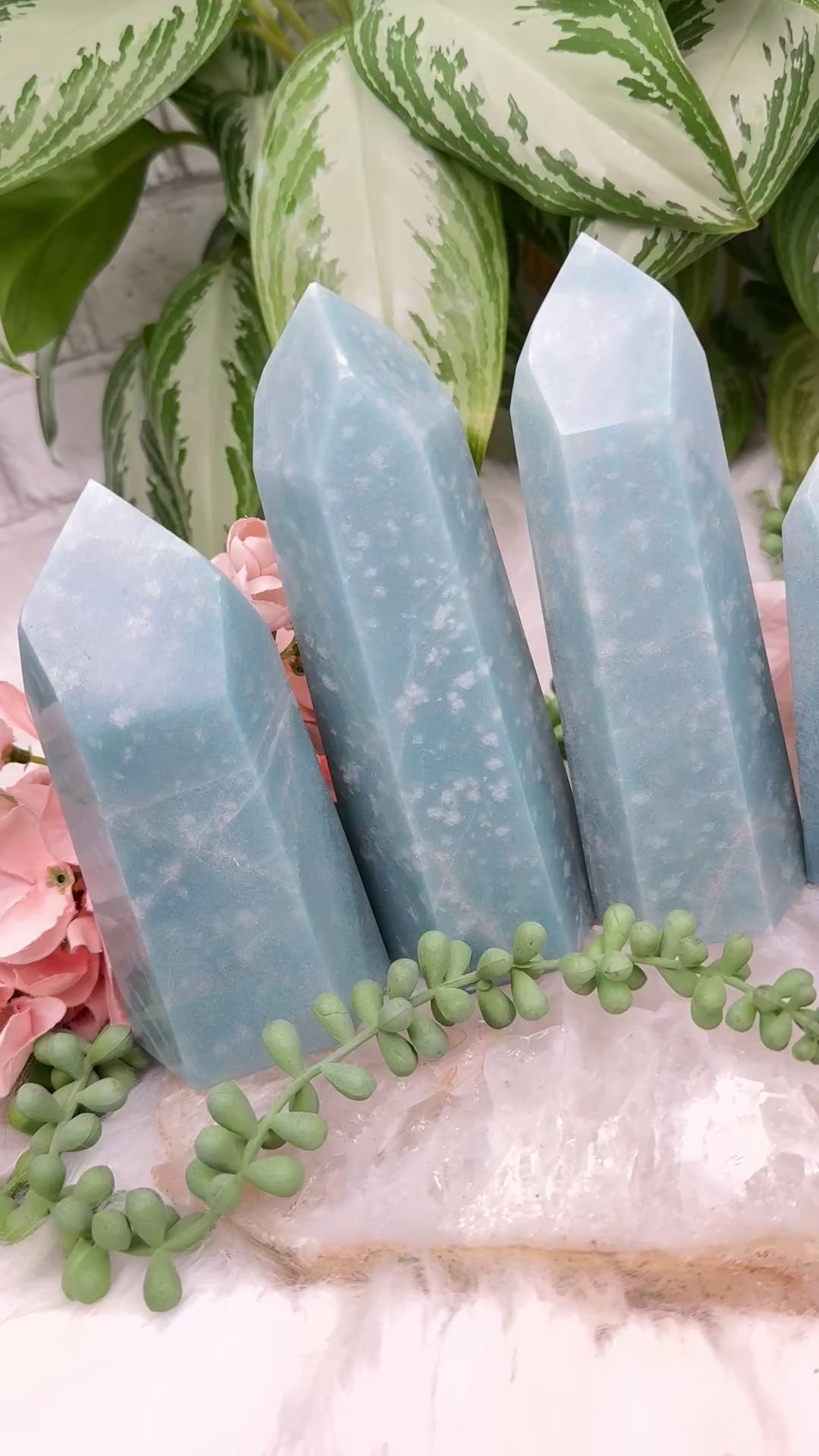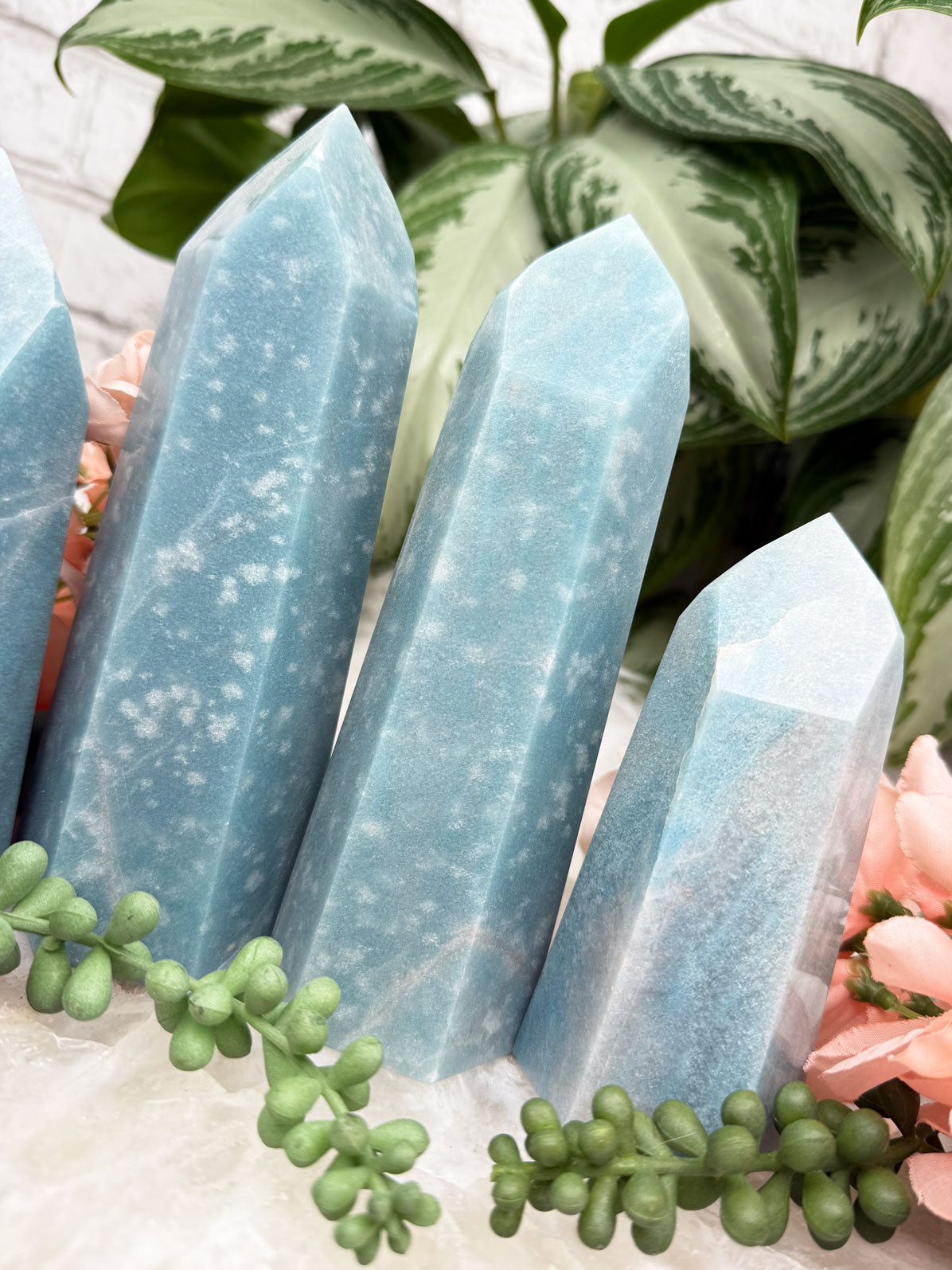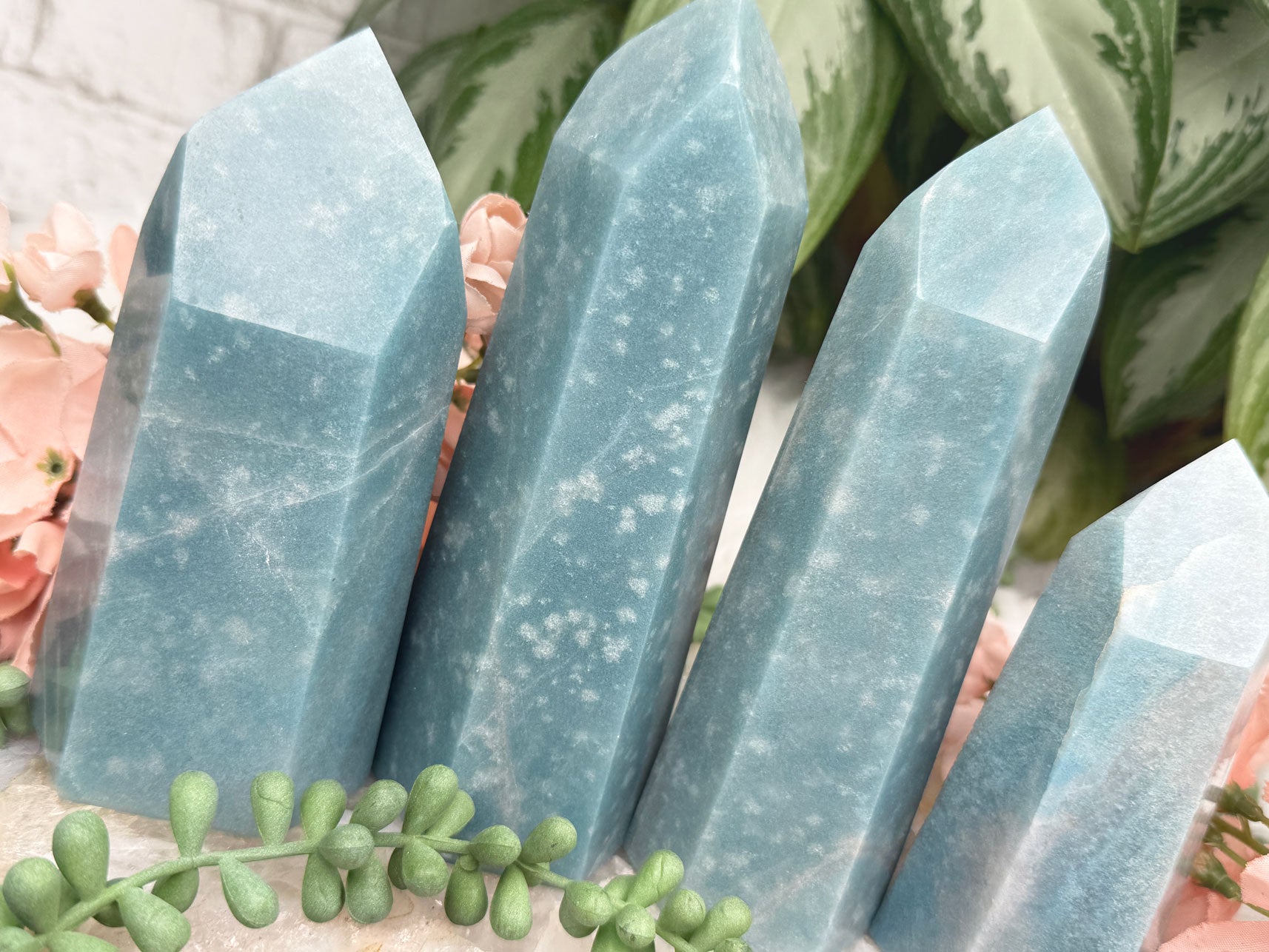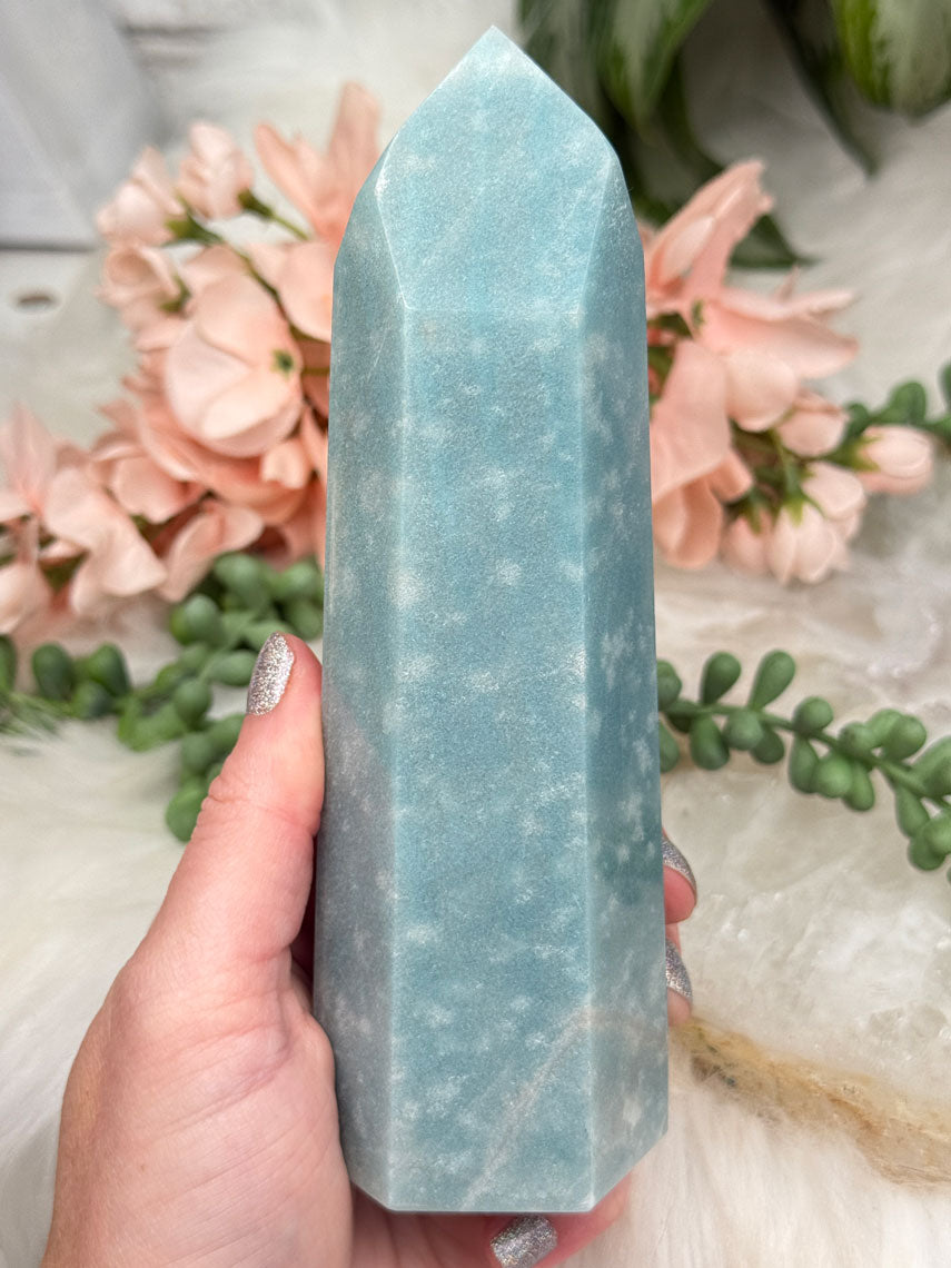 Beautiful naturally colored Blue Trolleite points from Brazil. These Trolleite points have the most calming teal blue coloring making them perfect for some ocean vibes if you have beach decor. Â Each one is unique, some with lines, some with a few different blue hues and some with spots that almost look like bubbles in water. Â You will get to choose your exact point!