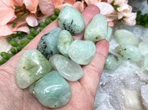 In Feng Shui, Prehnite is known to create a harmonious flow of energy, making it a valuable addition to your home or workspace. During meditation, holding these stones can help quiet the mind, enhance intuition, and deepen your connection with your inner self. Whether you're using them for crystal grids, meditation, or simply as a comforting presence throughout the day, these Prehnite tumbled stones offer a touch of nature's tranquility wherever you go.
