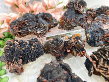 Striking orange Vanadinite crystals on a Black Manganese Oxide covered Baryte crystals from Morocco. Take a look at all of the tiny details. I just love the color contrast of these specimens. Please note that the black may come off on your hands a little bit when you handle it. There may be some subtle 'shedding' in transit too.