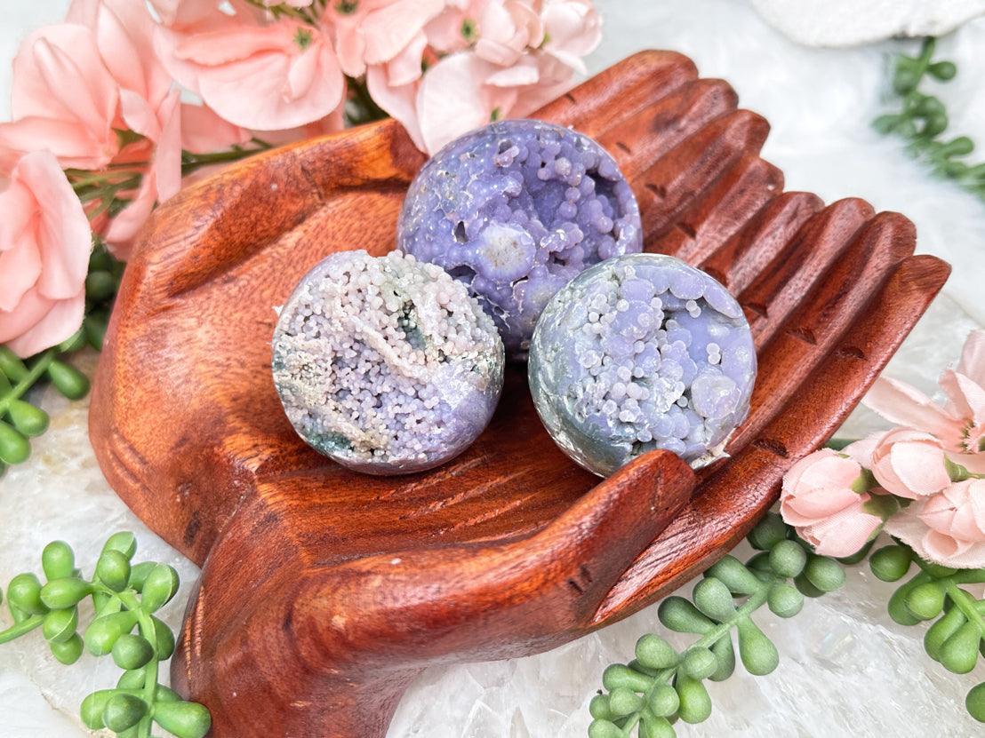 These hand-carved wooden bowls from Indonesia are truly a unique and charming addition to any space. Crafted in the shape of two hands coming together, they symbolize unity and harmony. The flat bottom of these bowls ensures stability, allowing them to sit gracefully on any surface. These bowls are not only practical but also aesthetically pleasing, making them perfect for holding an assortment of tumbled stones or small crystals. Additionally, you can use them as a stylish jewelry holder.