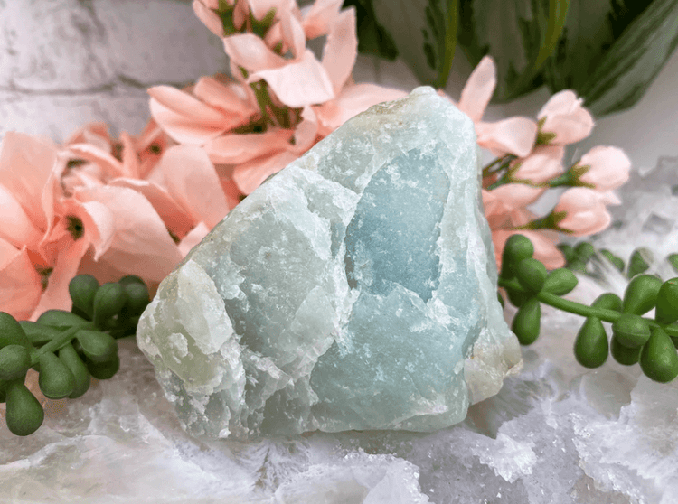 Aquamarine crystals, with their soothing and calming energy, pairs well with a variety of other crystals to enhance its effects. Blue Chalcedony, a stone of serenity and emotional balance, complements Aquamarine by amplifying its calming qualities and promoting inner peace. Celestite crystal, with a serenity and divine connection, works harmoniously with Aquamarine to deepen spiritual awareness and facilitate inner peace.
