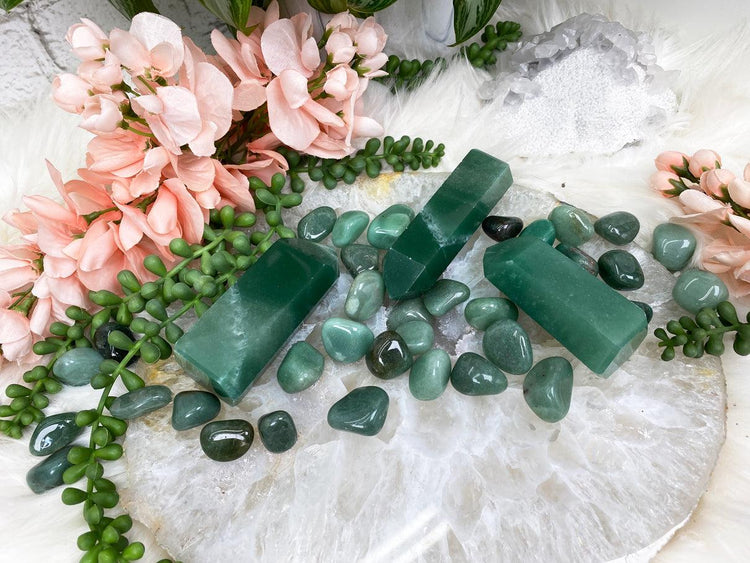 Aside from its metaphysical qualities, Green Aventurine also doubles as an ornamental object. Whether it's a polished point, a carved figurine, or a smooth palm stone, it adds a touch of natural beauty to any room.
