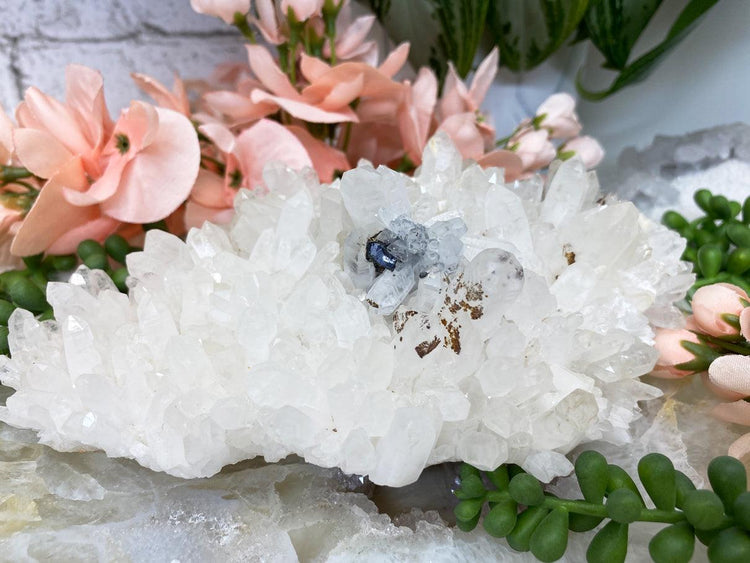 In addition to those, quartz can host an extensive range of other inclusions, including but not limited to goethite, brookite, hematite, tourmaline, chlorite, feldspar, and pyrite. These inclusions contribute to the quartz's overall energy and appearance, making each specimen a unique and valuable addition to the world of crystal healing and metaphysical exploration.