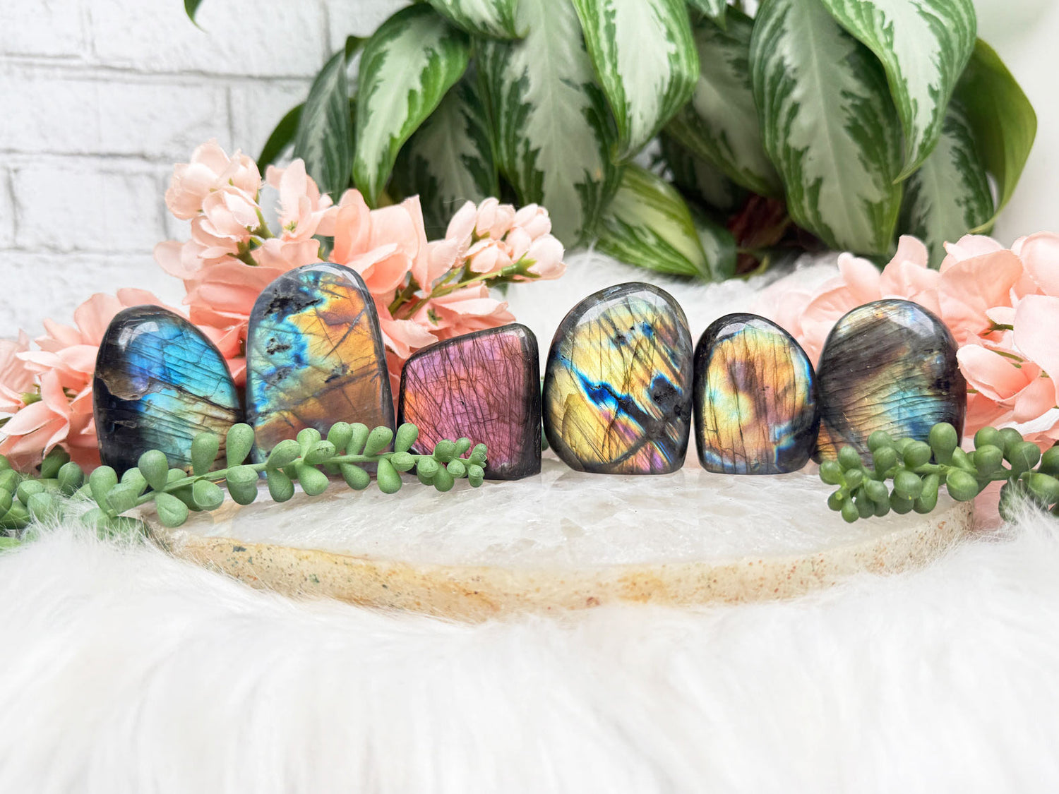 Labradorite ranges in color from the typical gray blue to green, purple,...