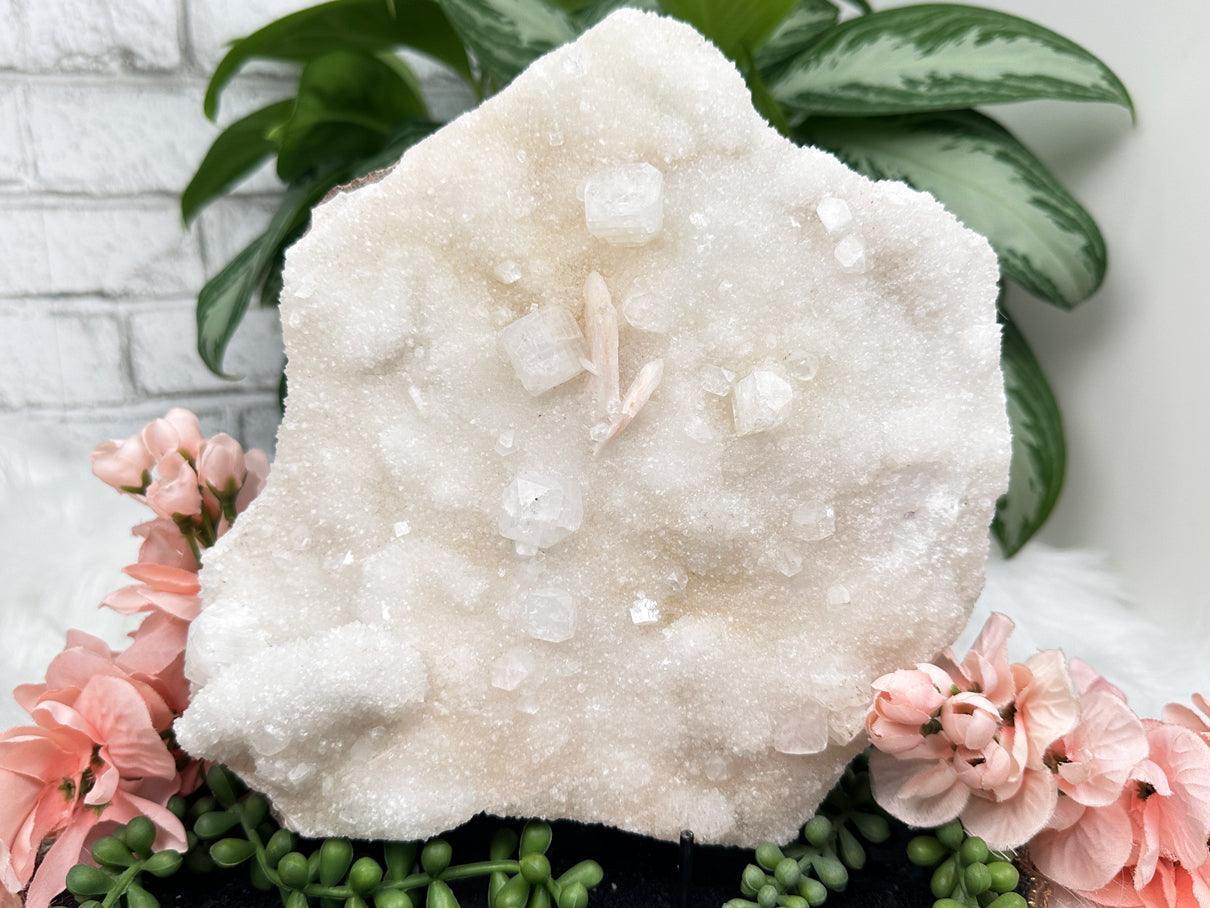 Beautiful large white sparkling Apophyllite Chalcedony crystal clusters with unique combinations and formations. Two of these are self-standing, and two of them will only lay flat. Some are mostly chalcedony with some apophyllite, and some are mostly apophyllite. All of these pieces will make a nice statement for a special place!