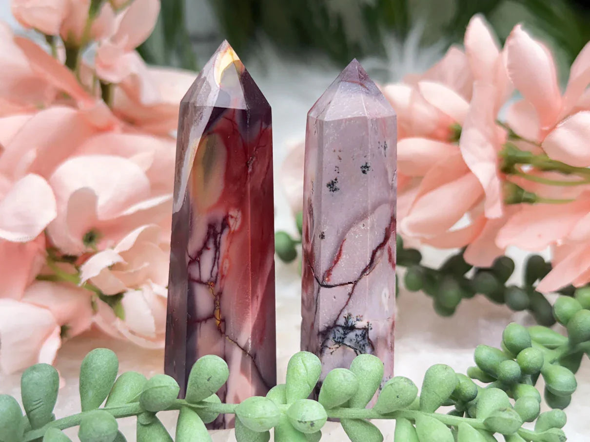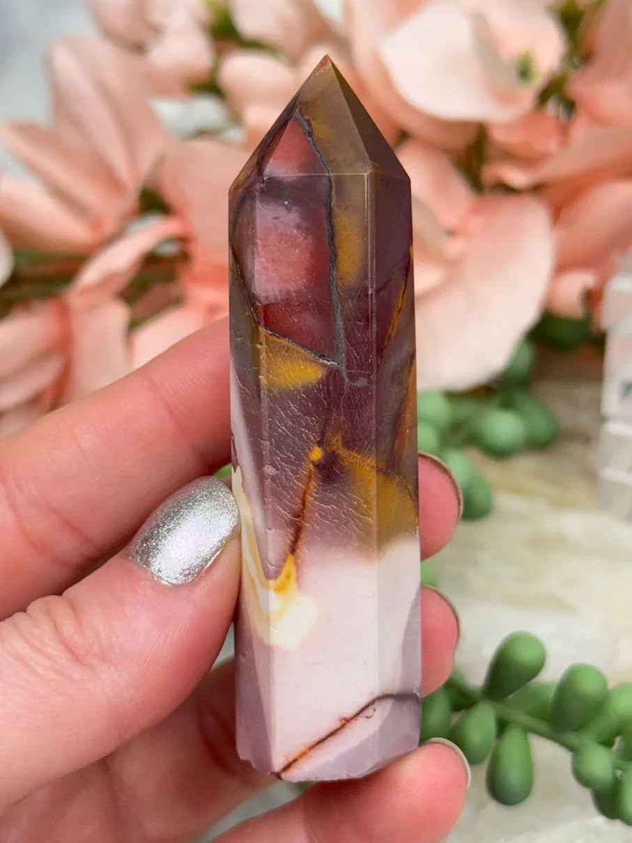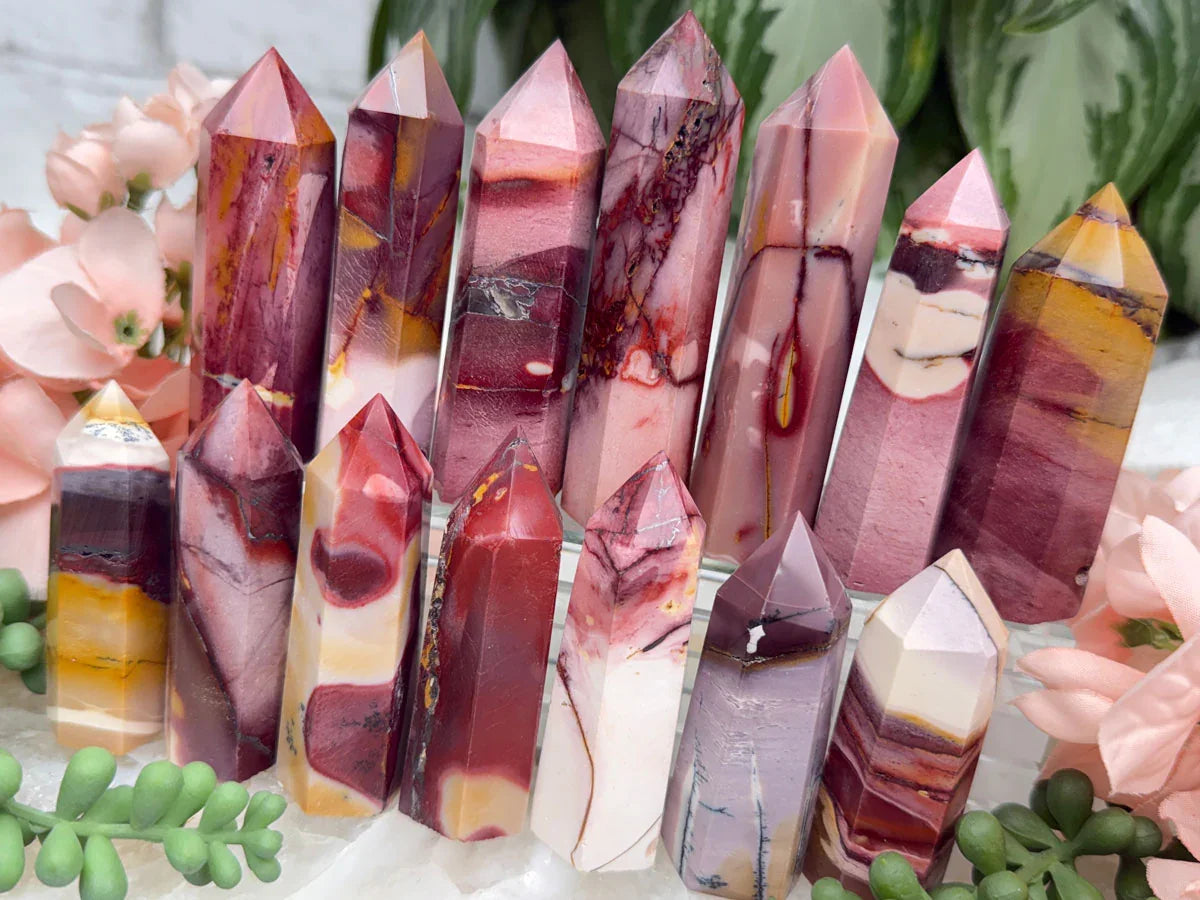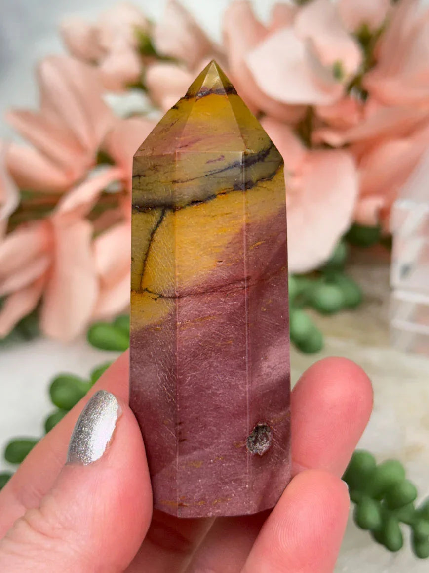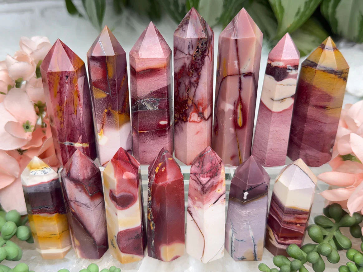 Adorable mookaite points. These are a fully polished point. Mostly red and/or pink, but some have subtle hints of yellow, white or purple in them. These smaller fully polished points may have a bit of a wobble or have a side that it leans toward, but they all fully stand ok and will have at least a couple sides where they will look like they are sitting fully straight. Be sure to look at the video for the full look!