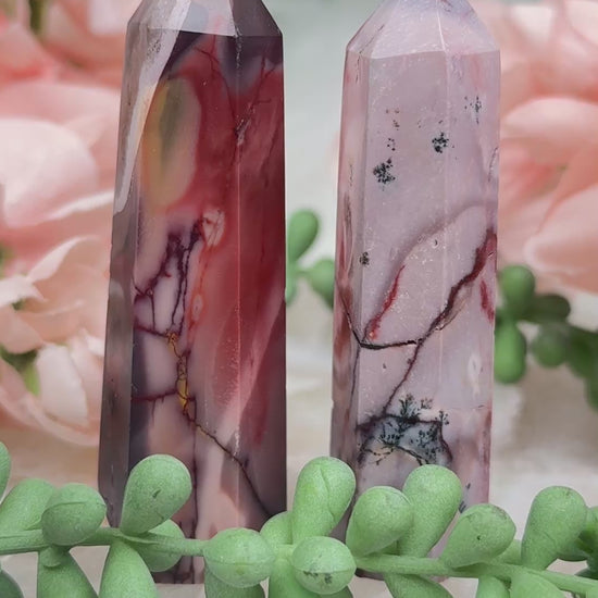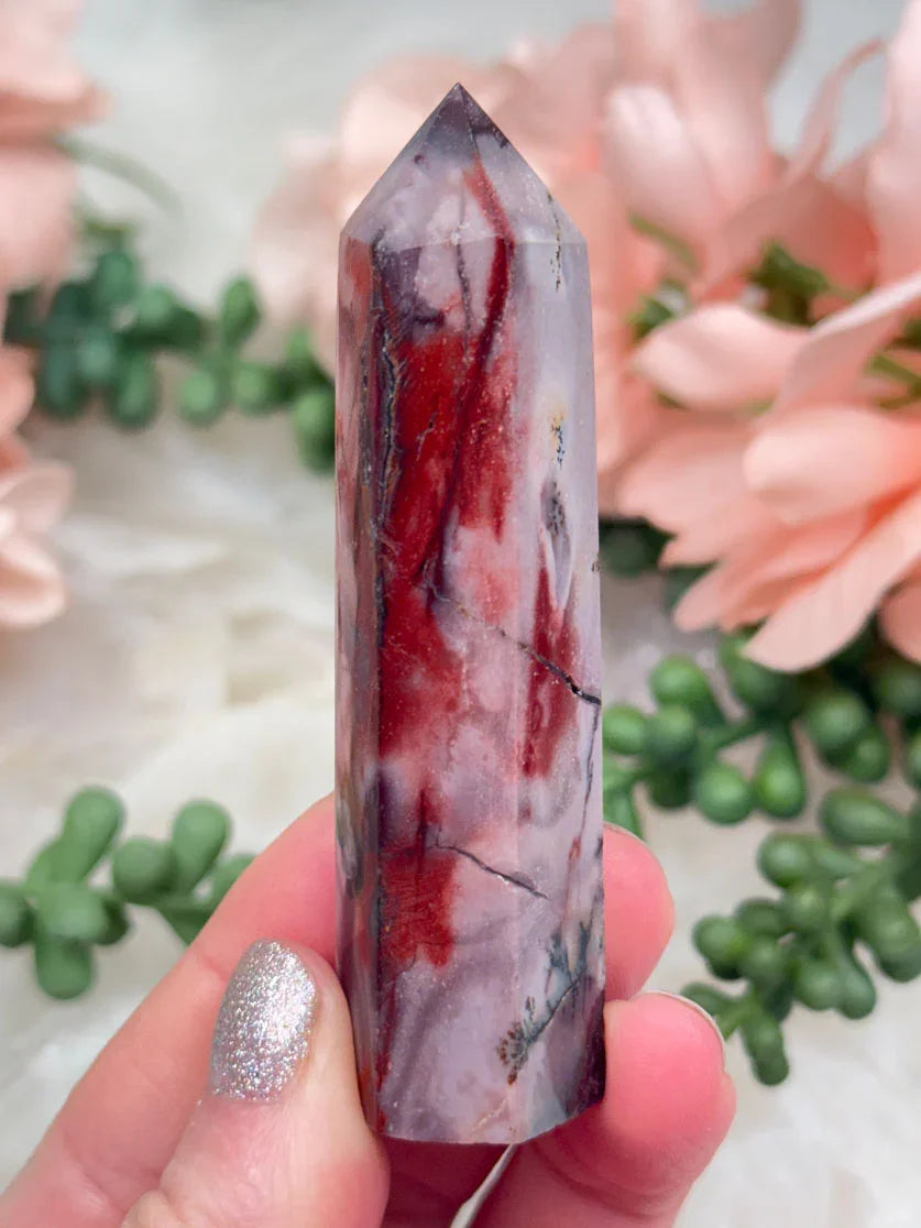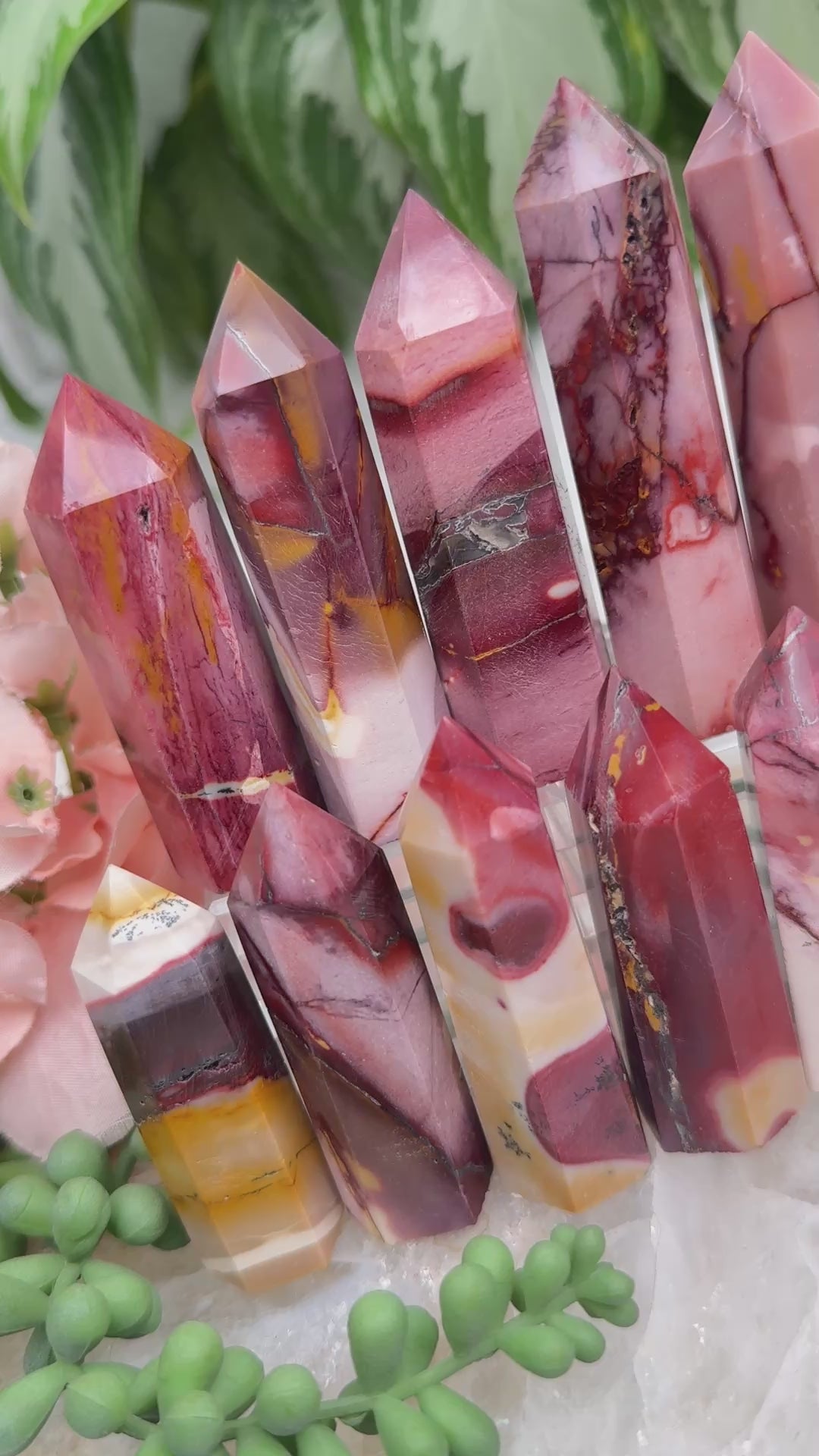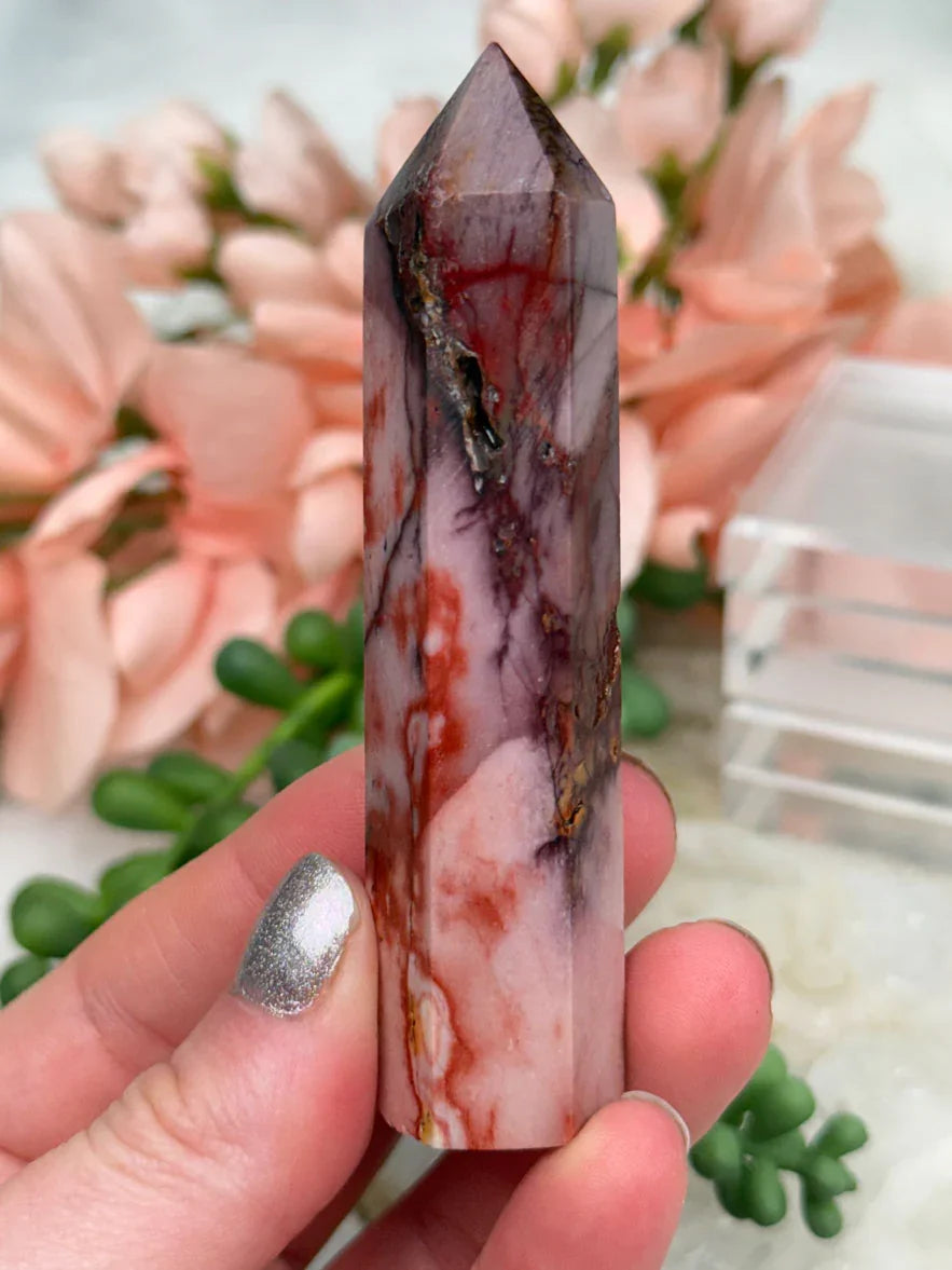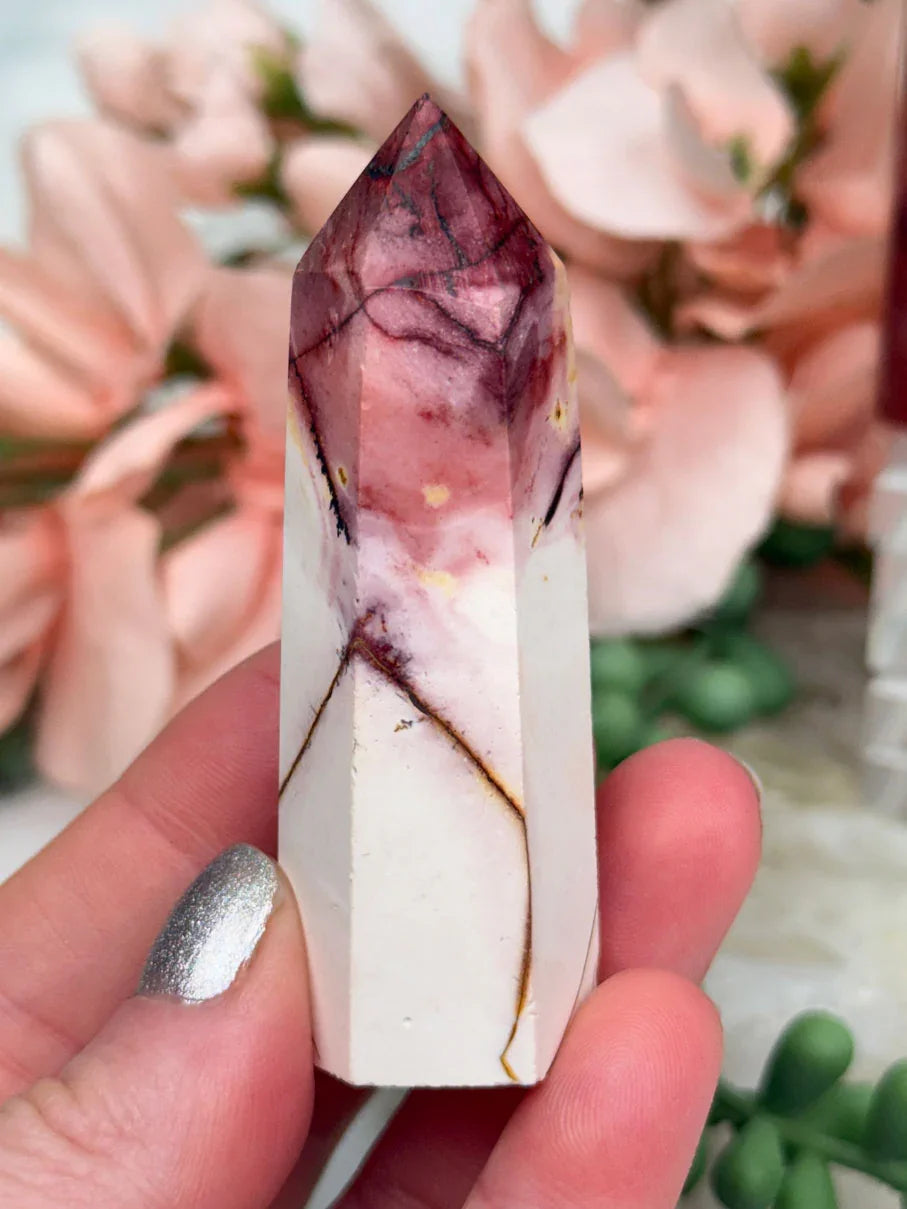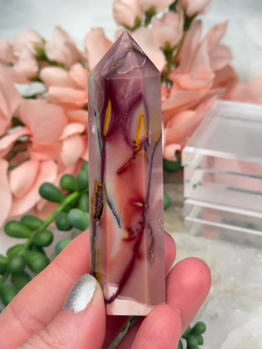 Adorable mookaite points. These are a fully polished point. Mostly red and/or pink, but some have subtle hints of yellow, white or purple in them. These smaller fully polished points may have a bit of a wobble or have a side that it leans toward, but they all fully stand ok and will have at least a couple sides where they will look like they are sitting fully straight. Be sure to look at the video for the full look!