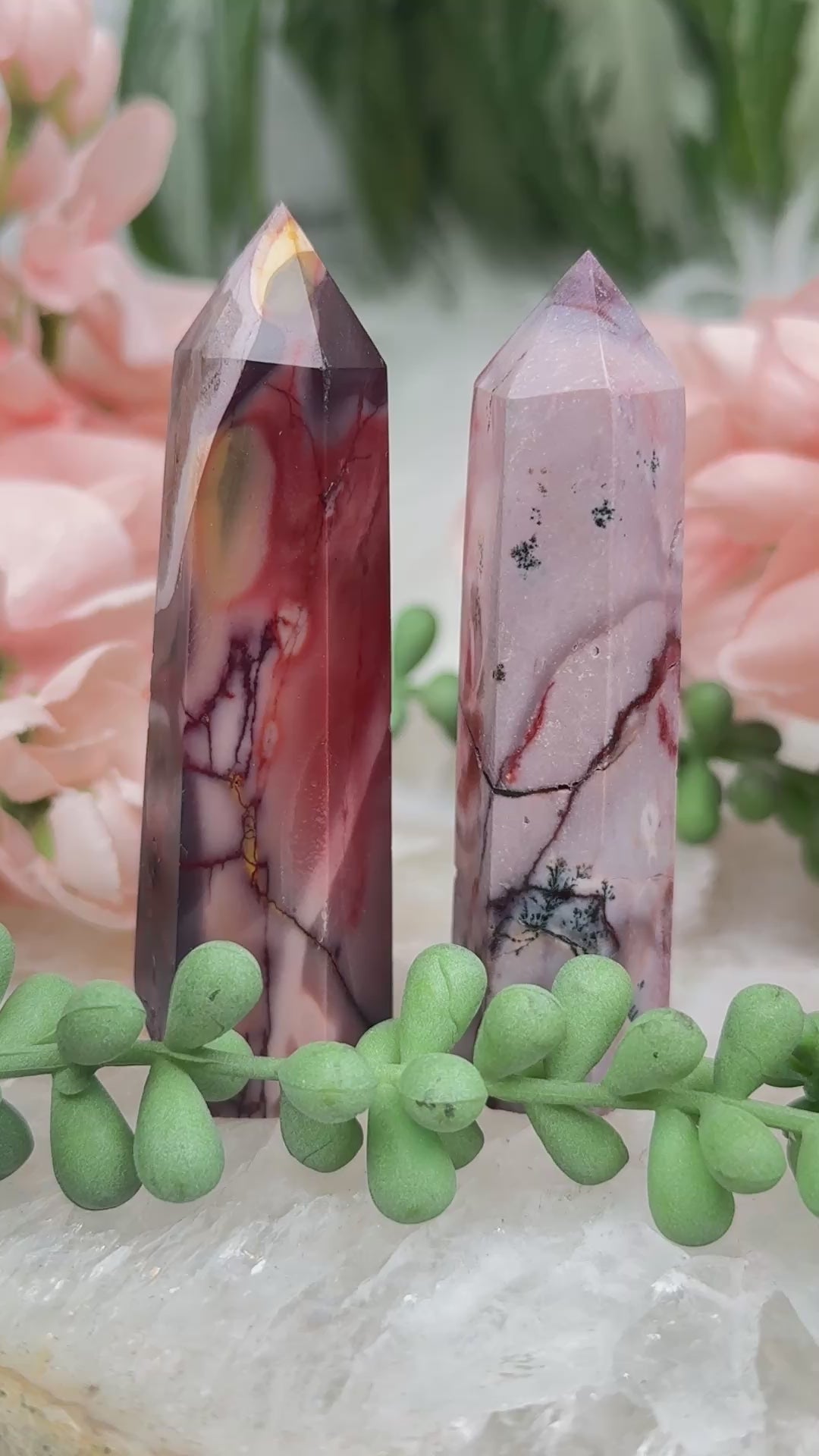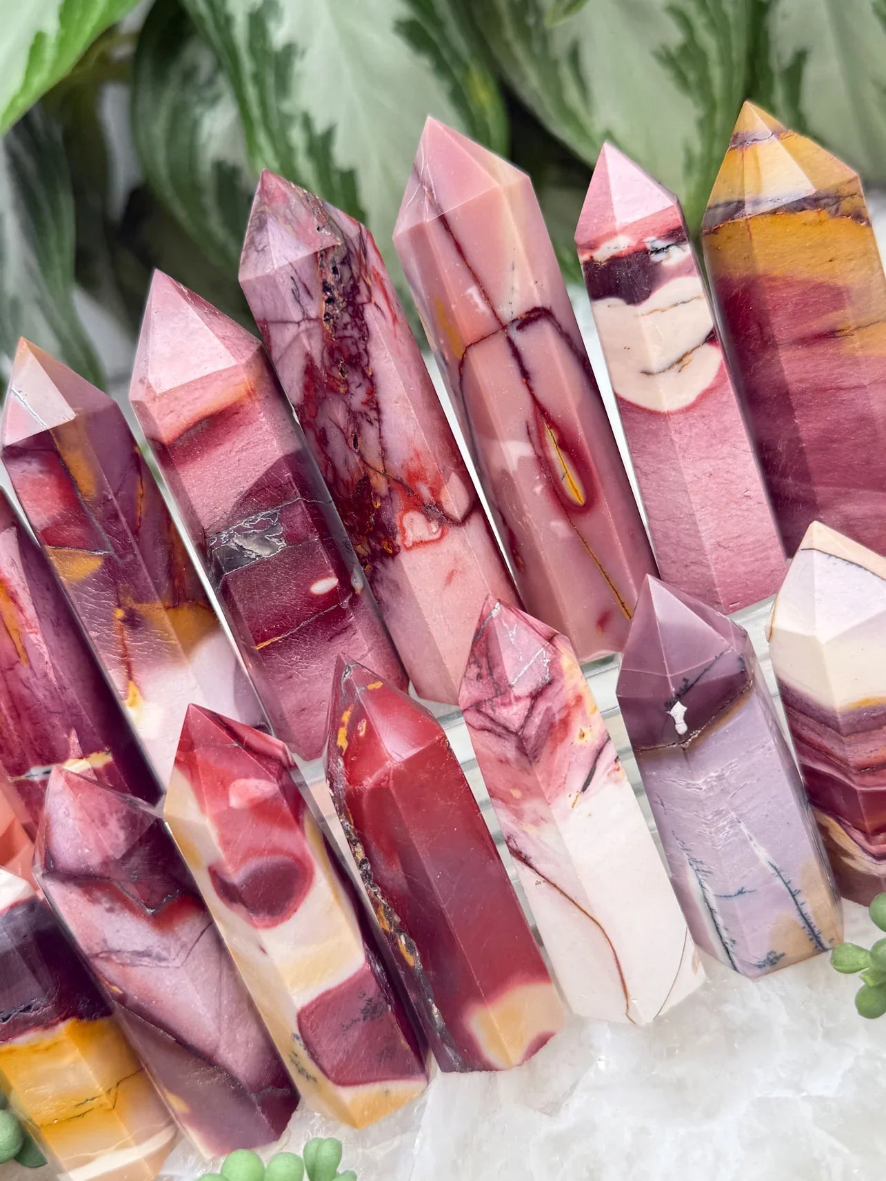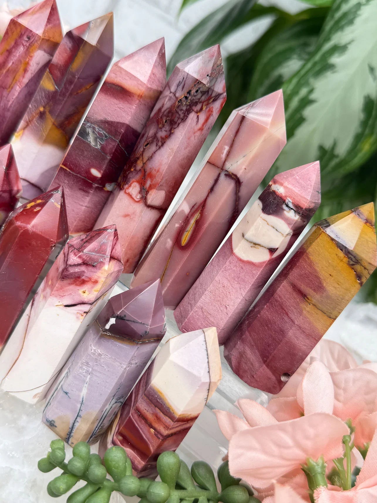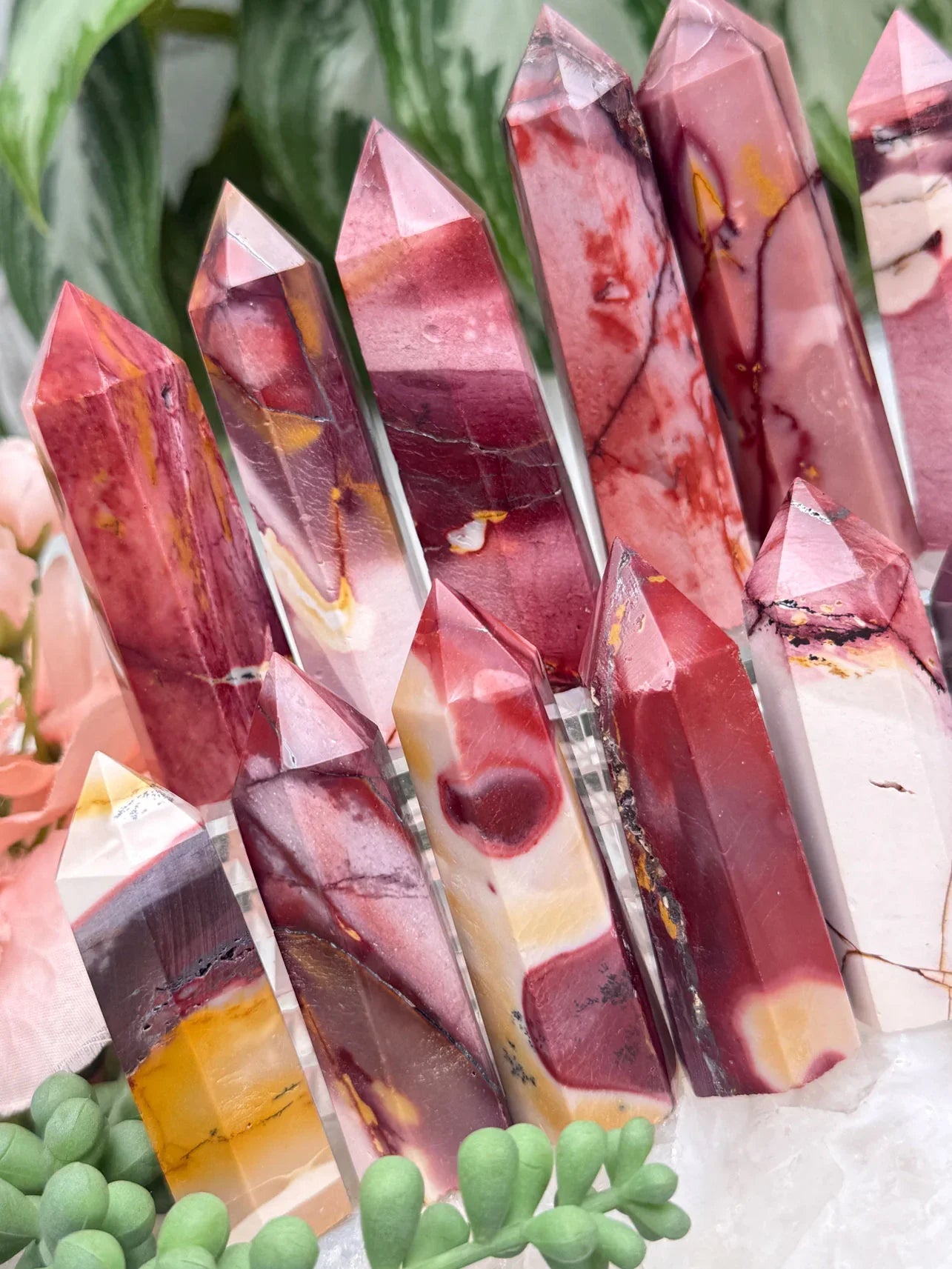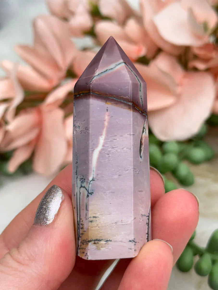Adorable mookaite points. These are a fully polished point. Mostly red and/or pink, but some have subtle hints of yellow, white or purple in them. These smaller fully polished points may have a bit of a wobble or have a side that it leans toward, but they all fully stand ok and will have at least a couple sides where they will look like they are sitting fully straight. Be sure to look at the video for the full look!