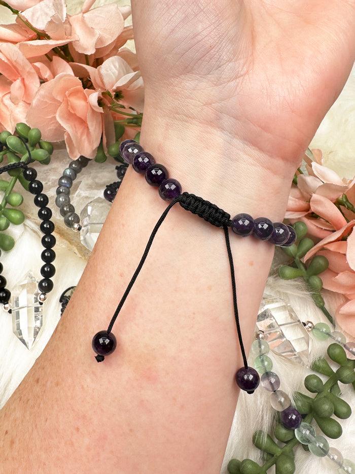 This is an adjustable (approx. 5.75" - 7.75") clear quartz point bracelet with your choice of the following crystal beads! Round beads are approx. 7-8mm